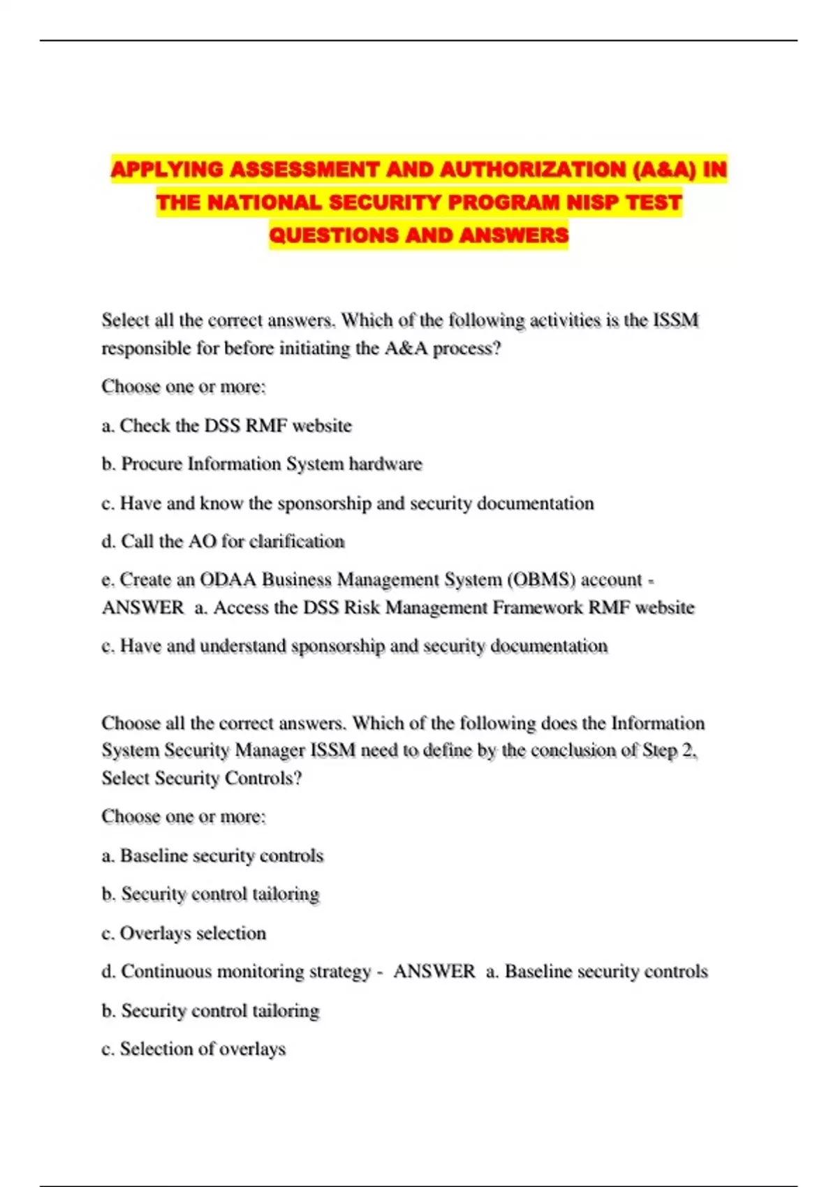 ANSWER a. Access the DSS Risk Management Framework RMF website