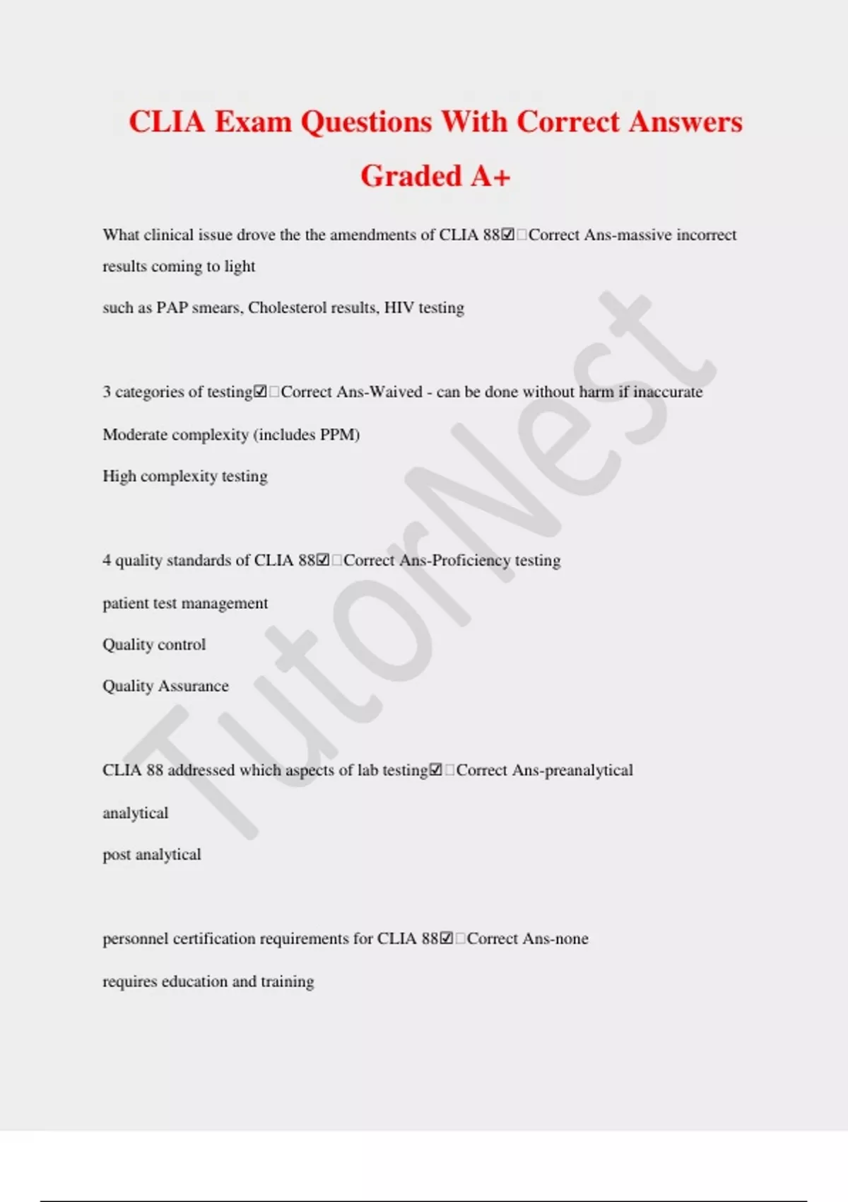 CLIA Exam Questions With Correct Answers