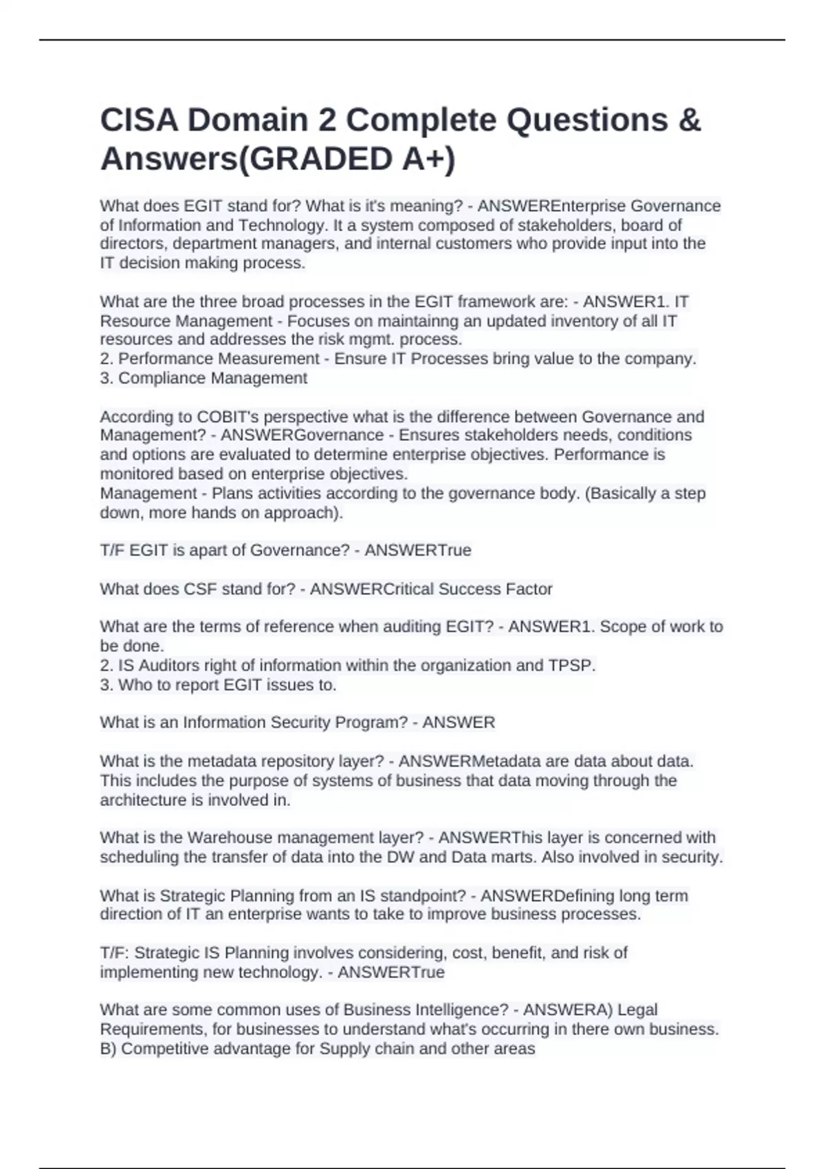 T/F EGIT is apart of Governance? - ANSWERTrue