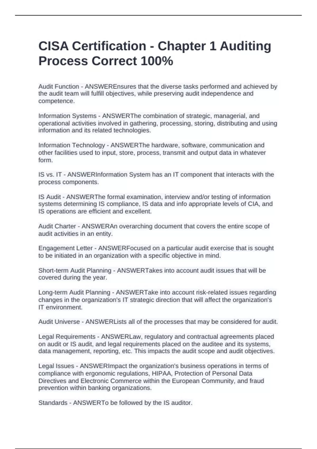 CISA Certification - Chapter 1 Auditing Process Correct 100%