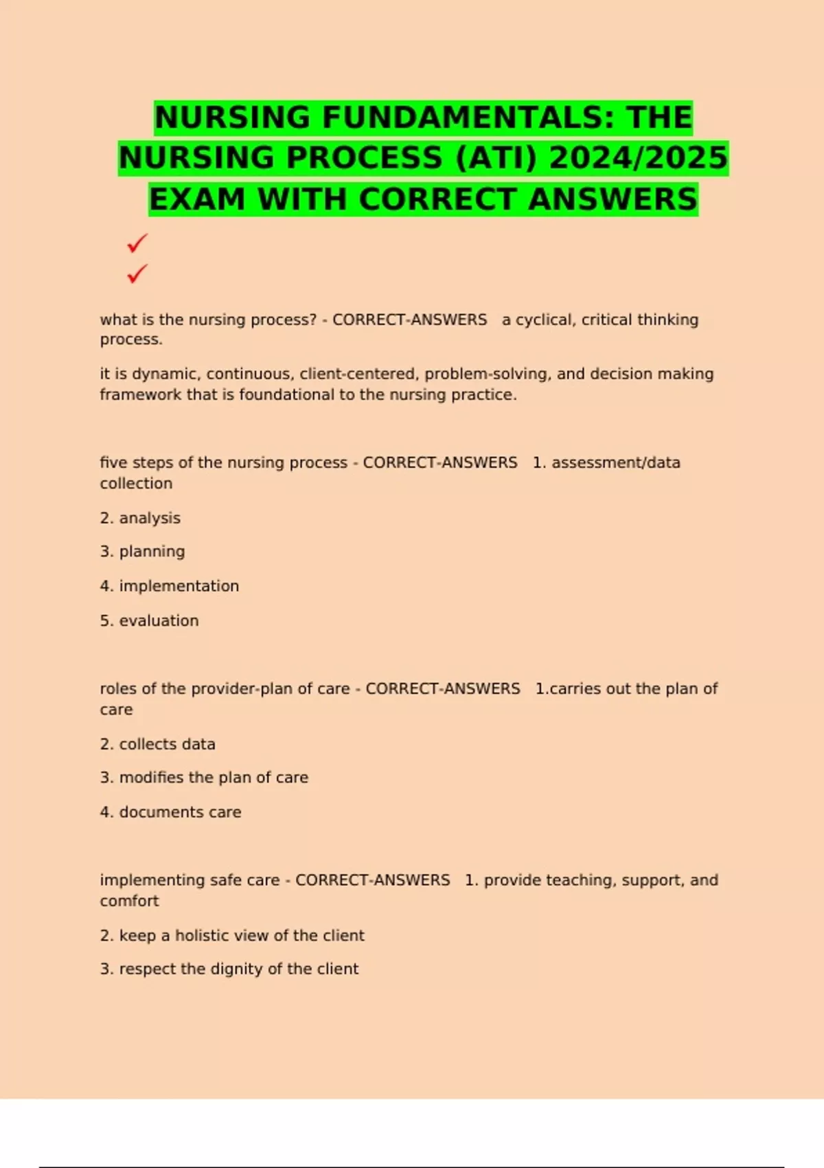 NURSING FUNDAMENTALS: THE NURSING PROCESS (ATI) 2024/2025 EXAM WITH CORRECT ANSWERS