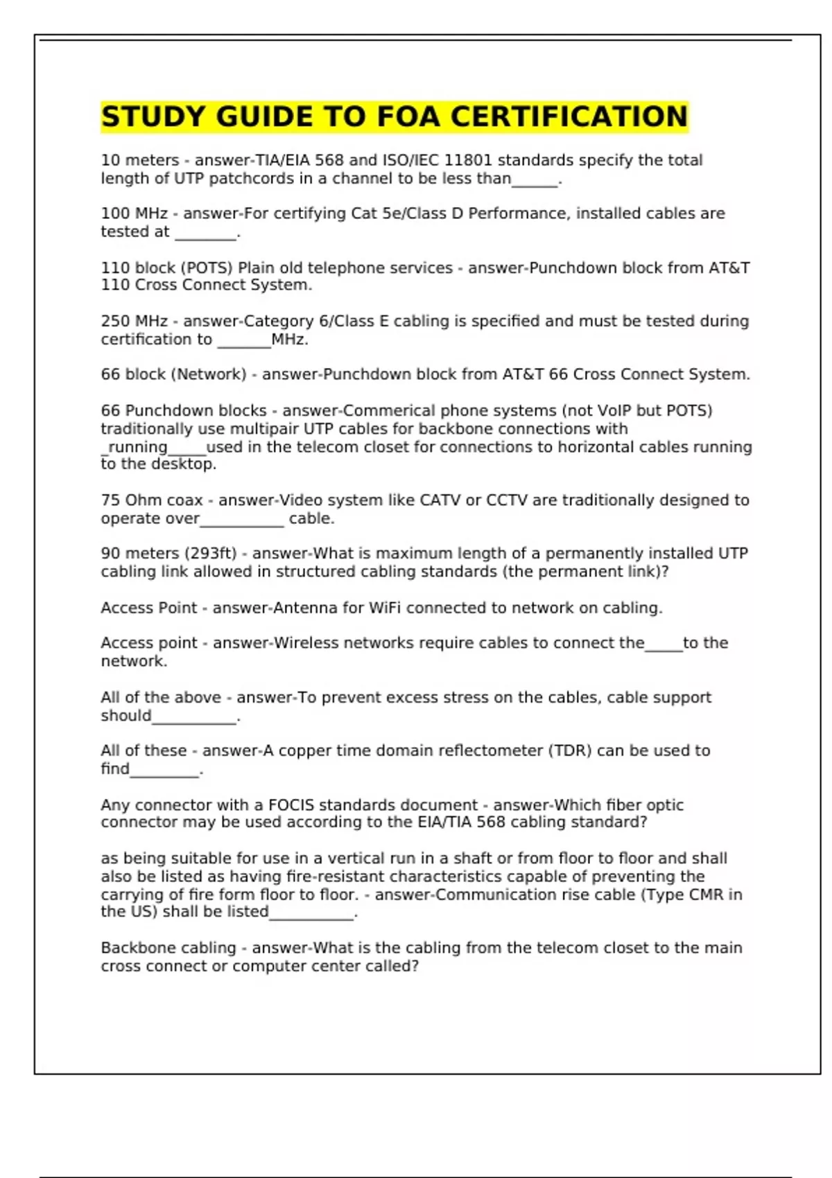 Cable tested to EIA/TIA and ISO/IEC specifications - answer-What is a "certified" UTP