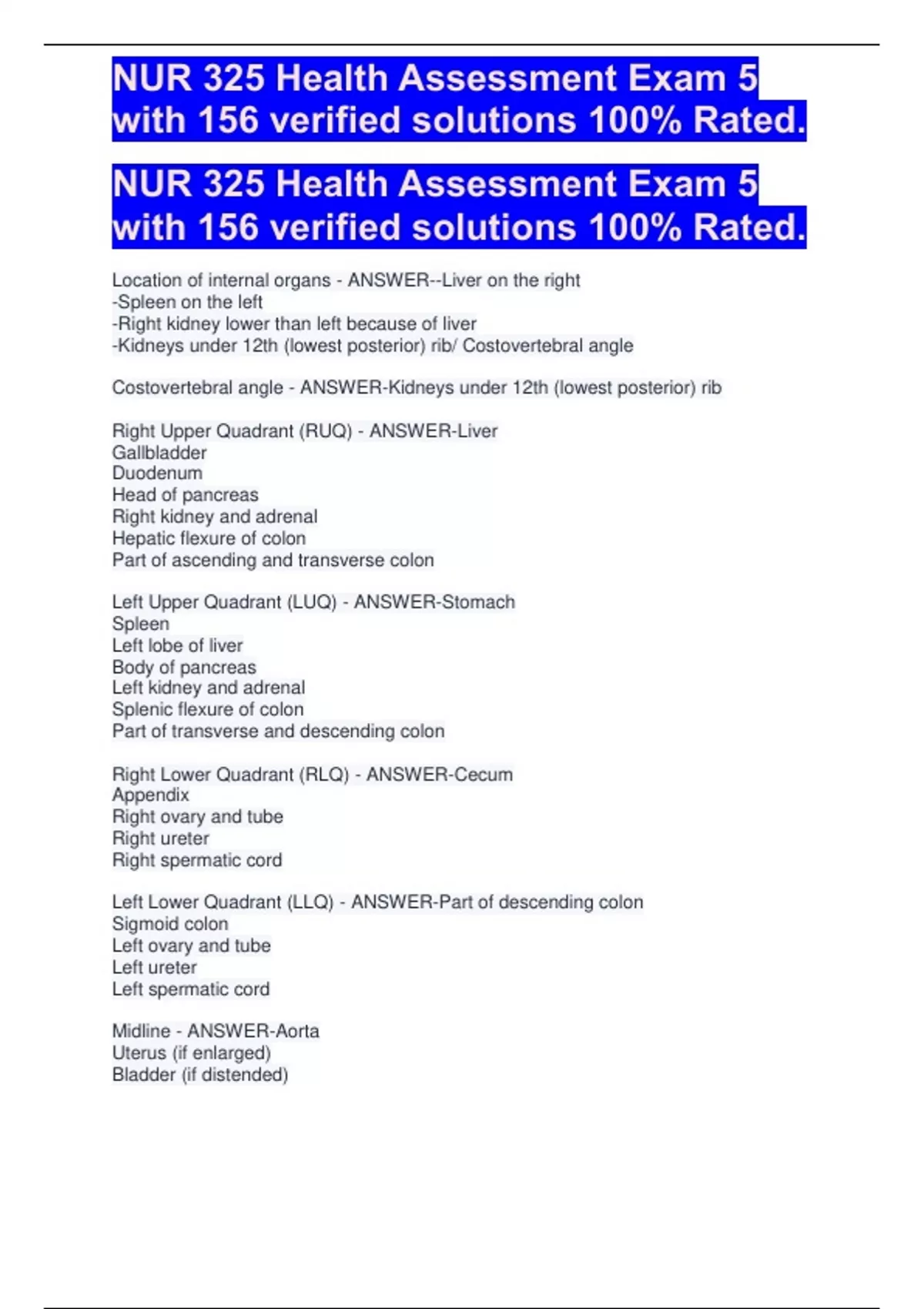 NUR 325 Health Assessment Exam 5