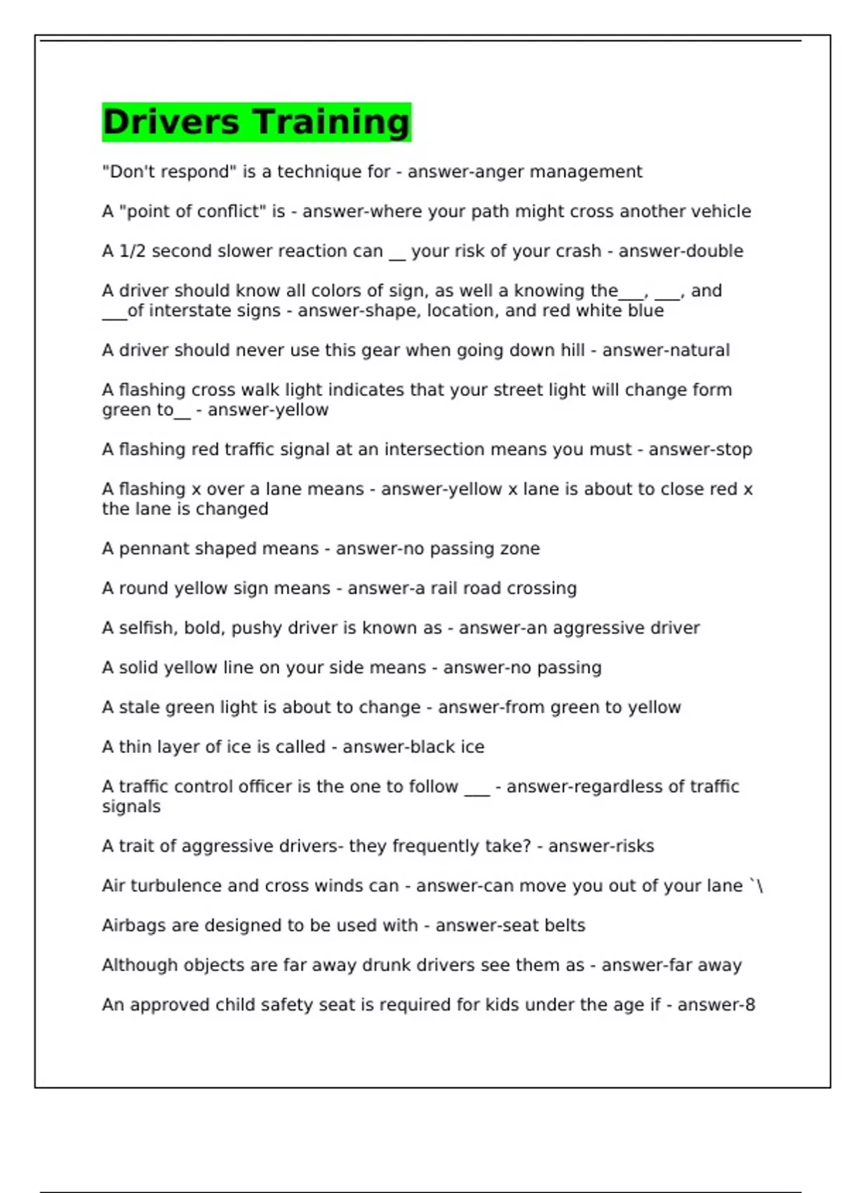 A trait of aggressive drivers- they frequently take? - answer-risks