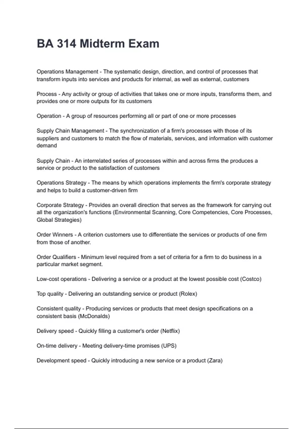 Operations Strategy - The means by which operations implements the firm's corporate strategy