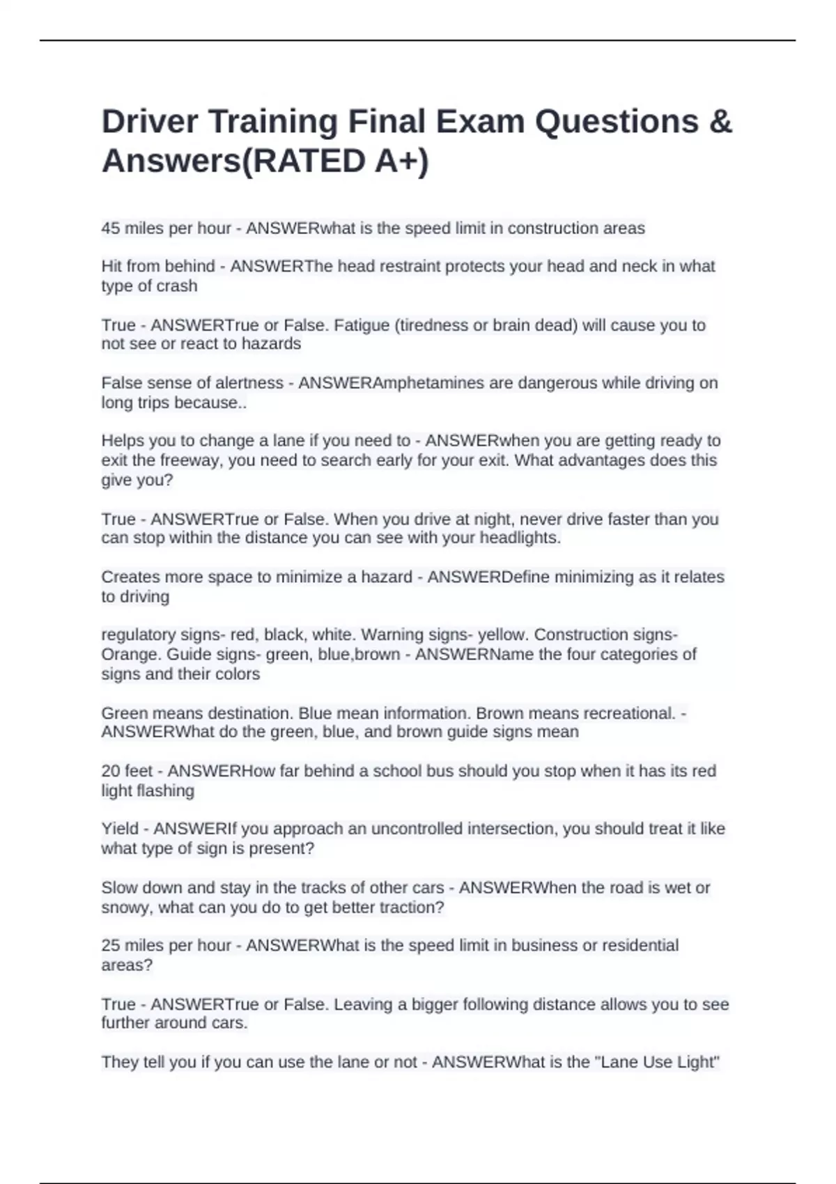 True - ANSWERTrue or False. When you drive at night, never drive faster than you