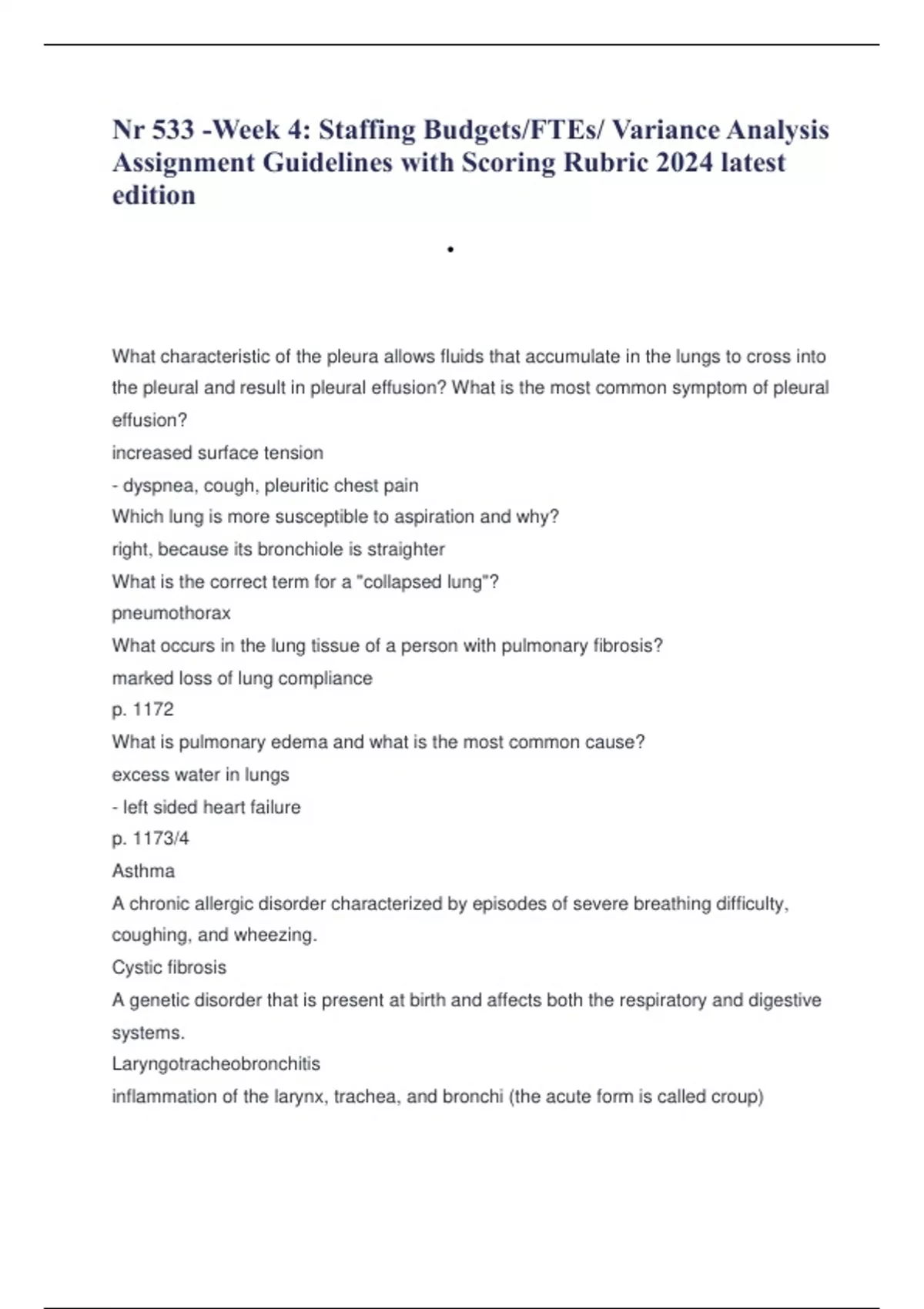 Nr 533 -Week 4: Staffing Budgets/FTEs/ Variance Analysis Assignment Guidelines with Scoring Rubric 2024 latest edition
