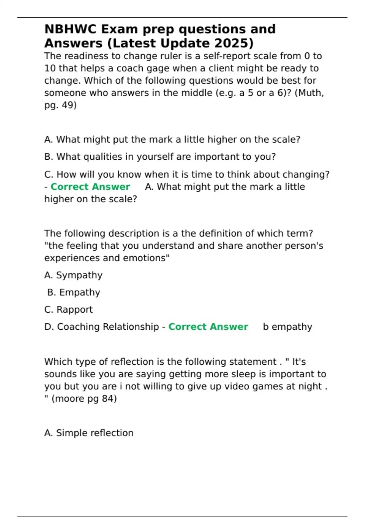 NBHWC Exam prep questions and