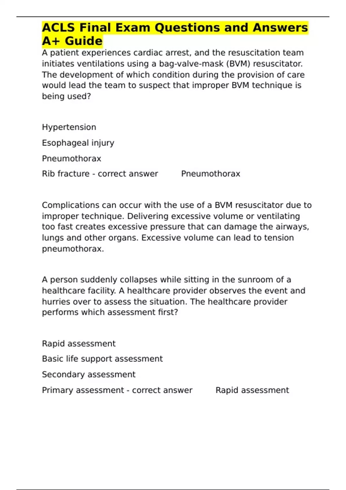 ,ACLS Final Exam Questions and Answers