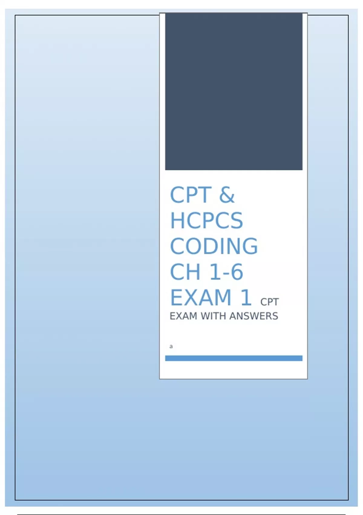 CPT & HCPCS CODING CH 1-6 EXAM 1