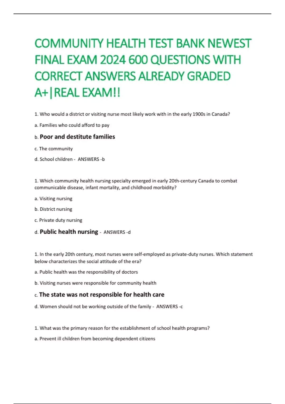 COMMUNITY HEALTH TEST BANK NEWEST FINAL EXAM 2024 600 QUESTIONS WITH CORRECT ANSWERS ALREADY GRADED A+|REAL EXAM!!