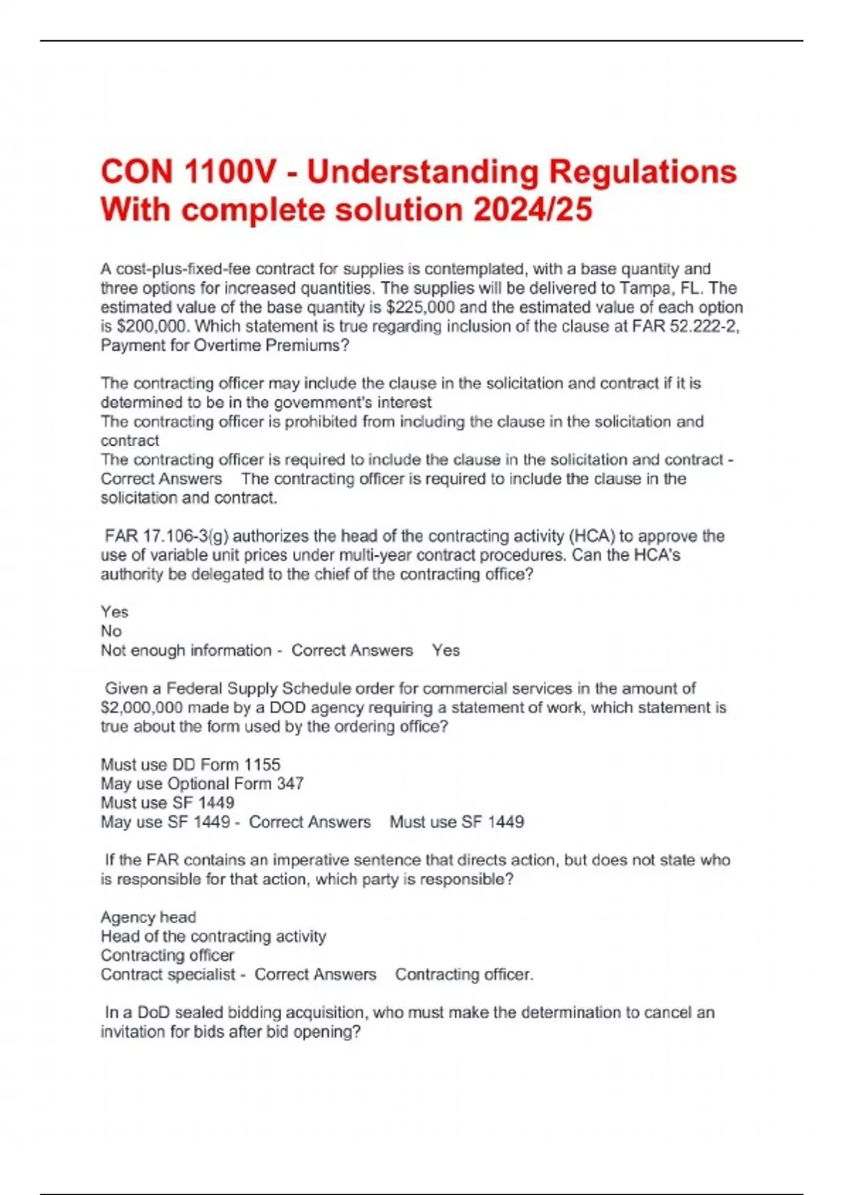 CON 1100V - Understanding Regulations With complete solution 2024/25CON 1100V - Understanding Regulations With complete solution 2024/25CON 1100V - Understanding Regulations With complete solution 2024/25