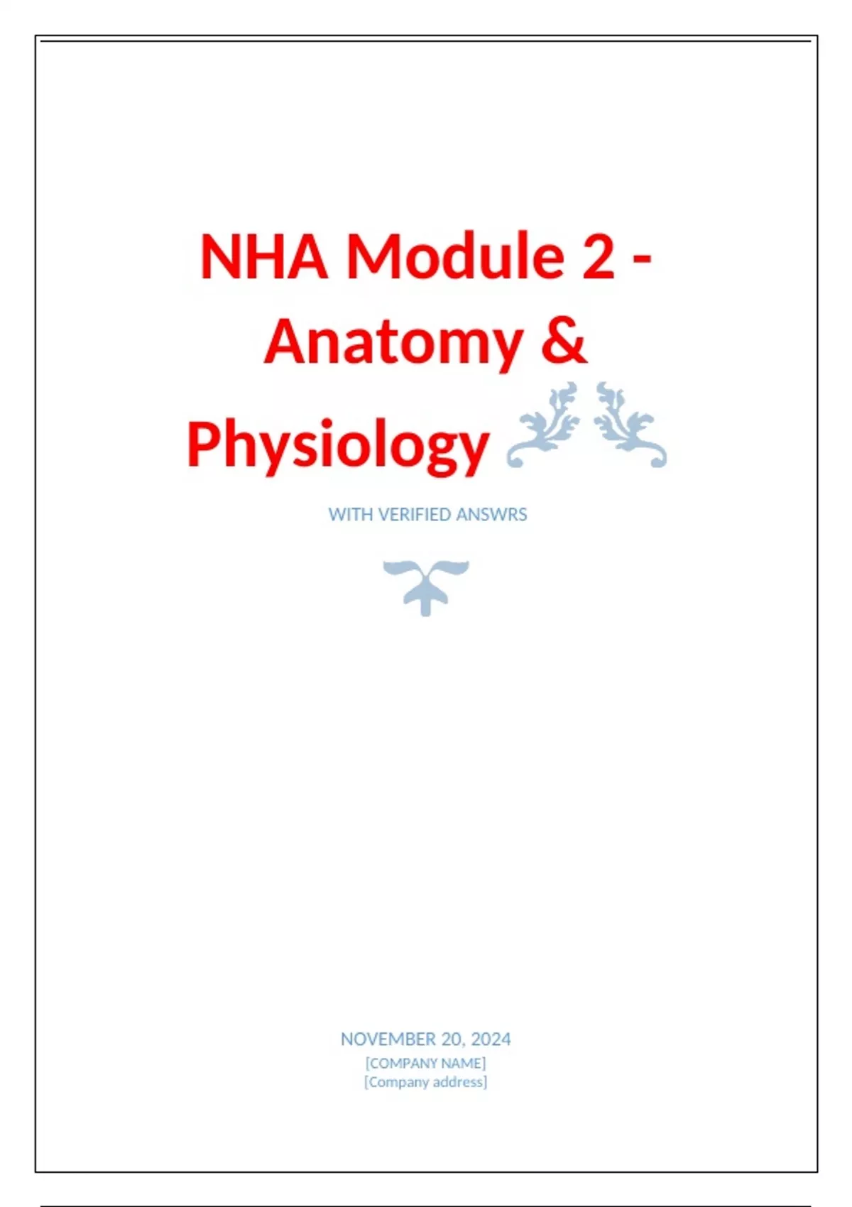 ,NHA MODULE 2 - ANATOMY & PHYSIOLOGY
