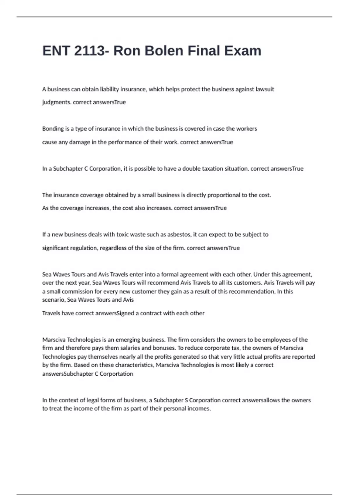 In the context of legal forms of business, a Subchapter S Corporation correct answersallows the owners