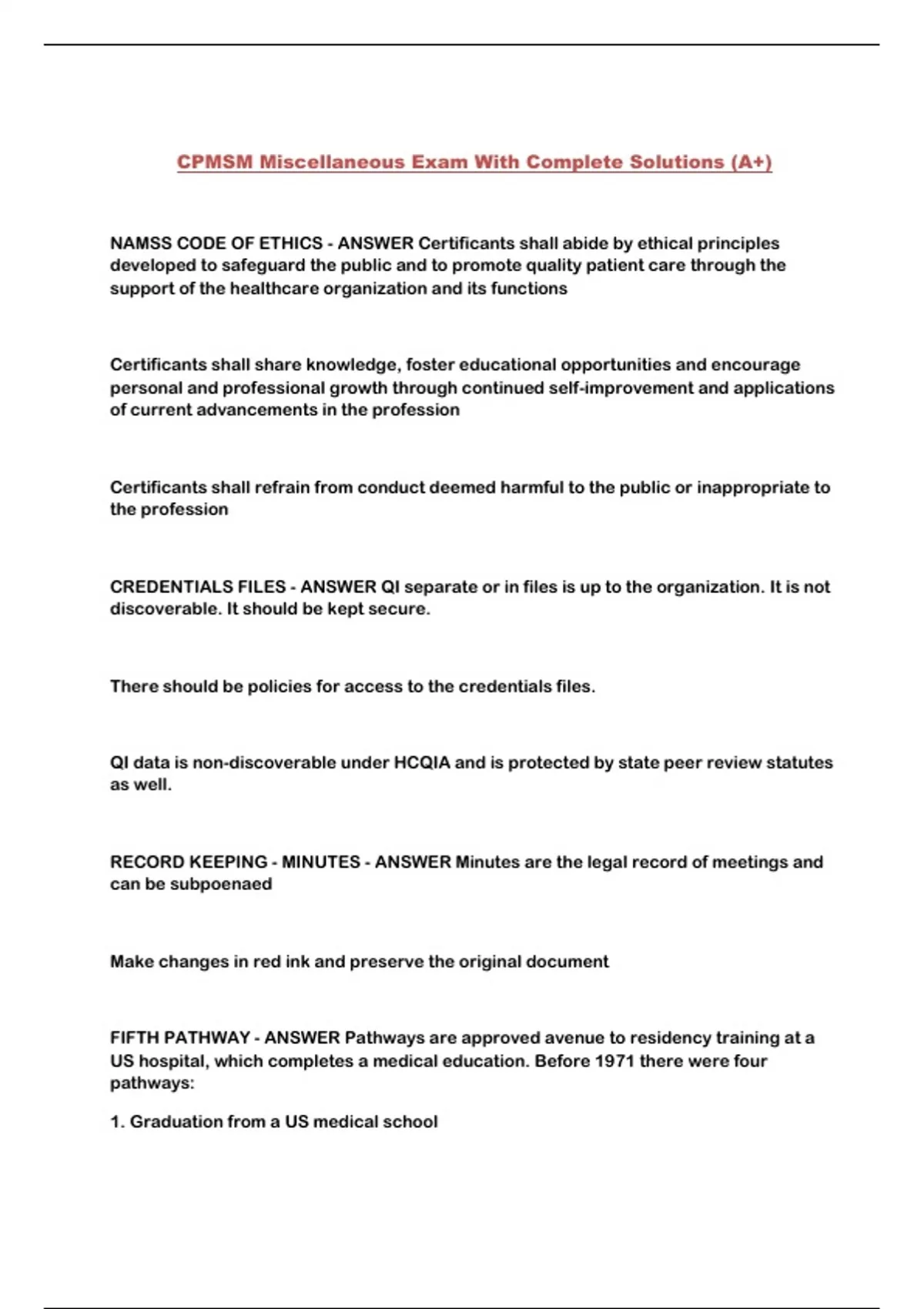 CPMSM Miscellaneous Exam With Complete Solutions (A+)...