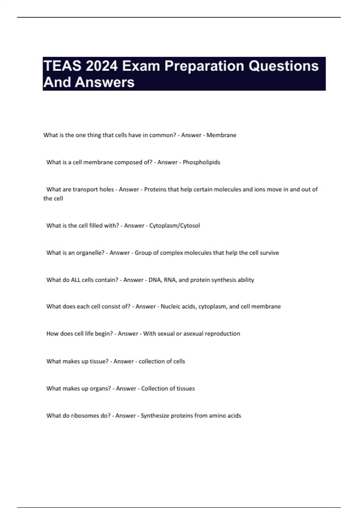 TEAS 2024 Exam Preparation Questions And Answers