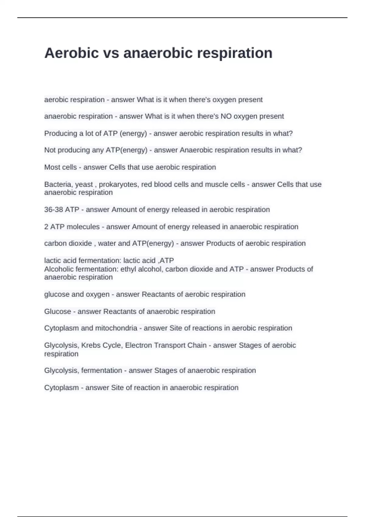 Not producing any ATP(energy) - answer Anaerobic respiration results in what?