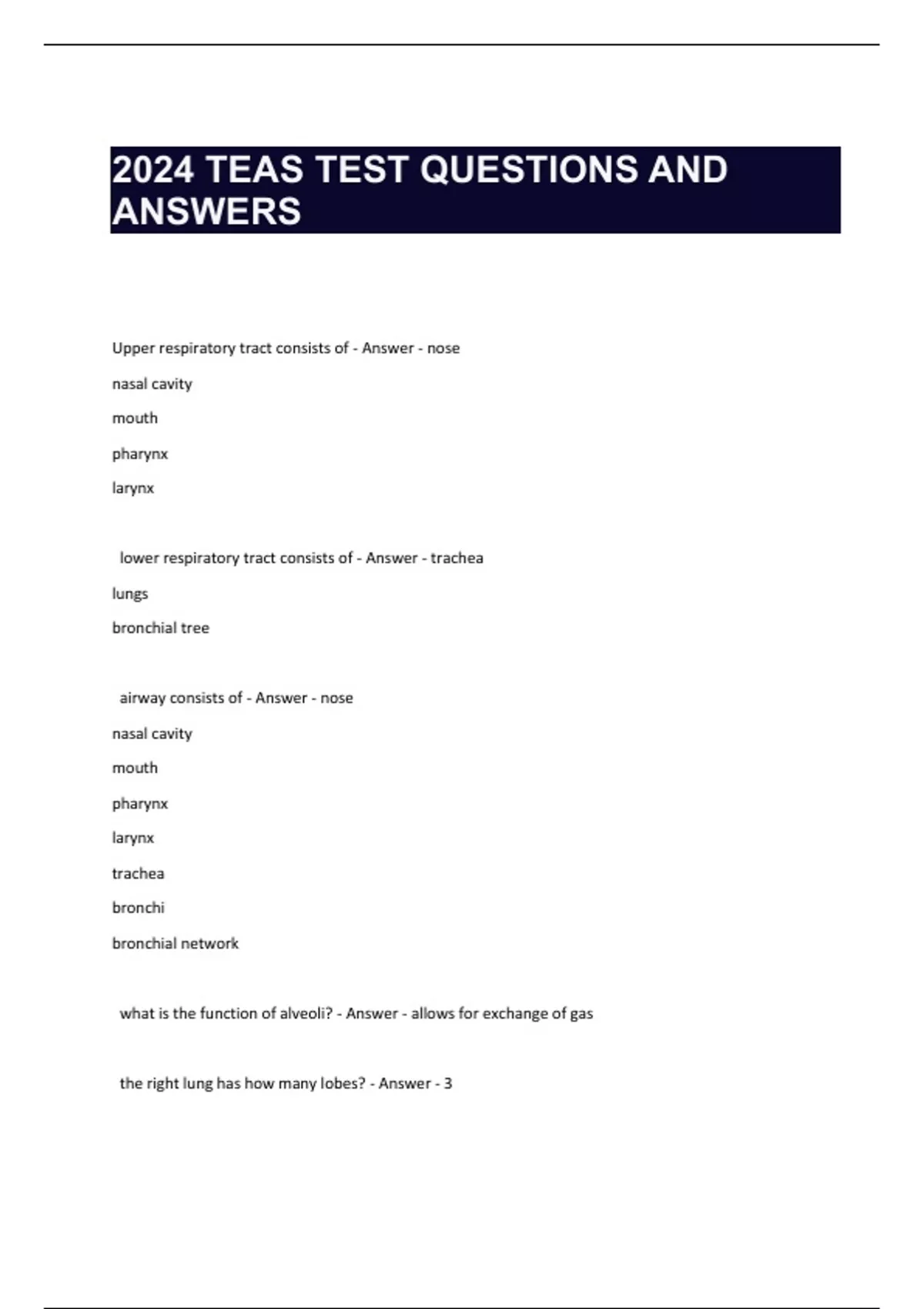 2024 TEAS TEST QUESTIONS AND ANSWERS
