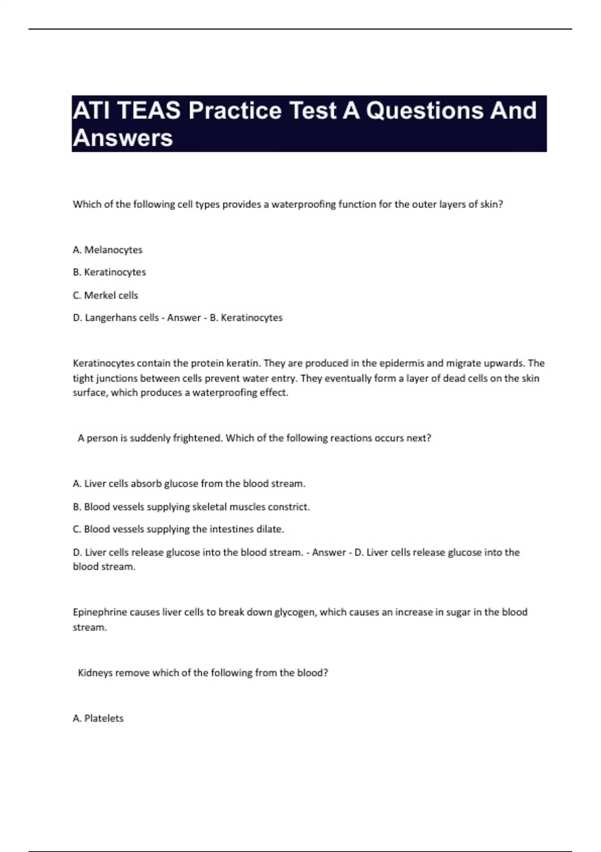 ATI TEAS Practice Test A Questions And Answers