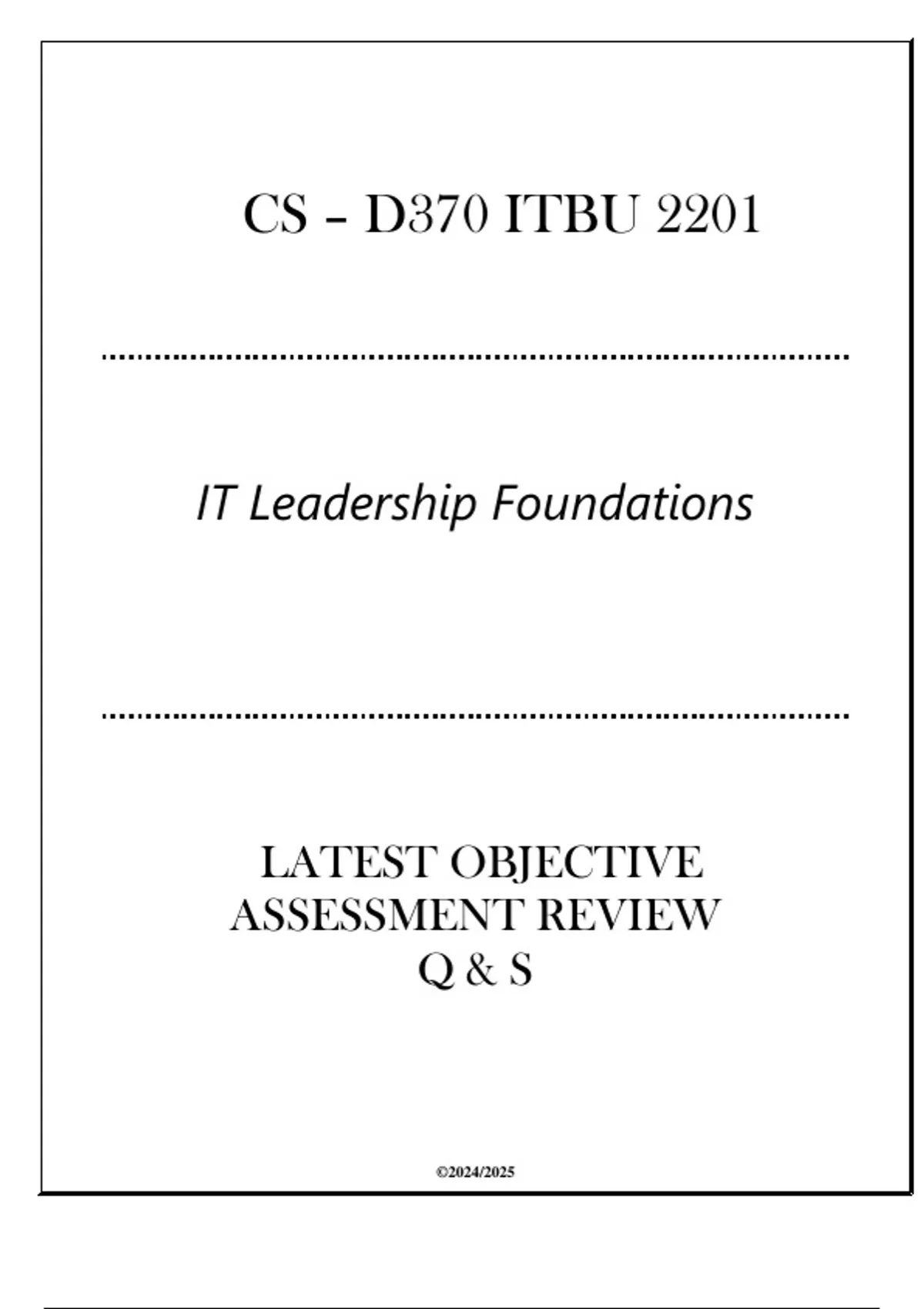 (CS-D370) ITBU 2201 IT Leadership Foundations - Latest OA Review Q & S 2024(CS-D370) ITBU 2201 IT Leadership Foundations - Latest OA Review Q & S 2024(CS-D370) ITBU 2201 IT Leadership Foundations - Latest OA Review Q & S 2024