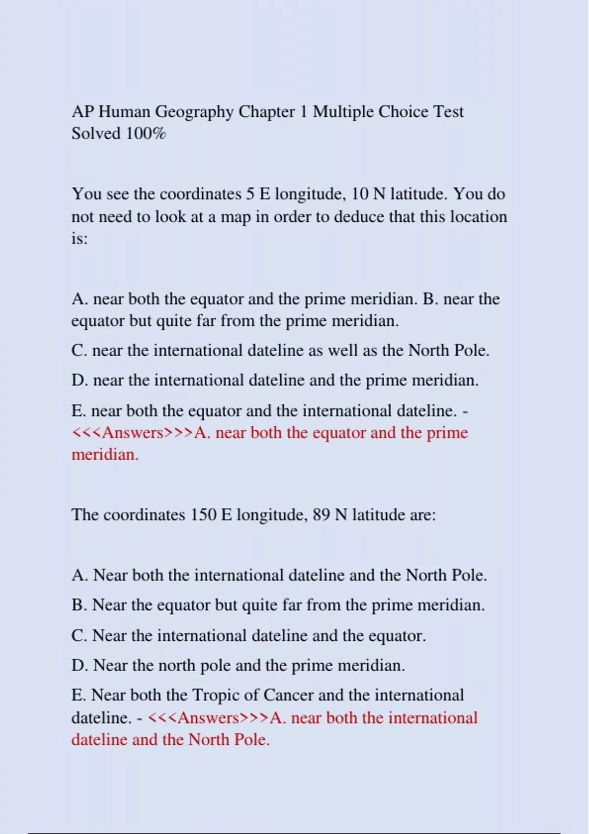 <<<Answers>>>A. near both the equator and the prime