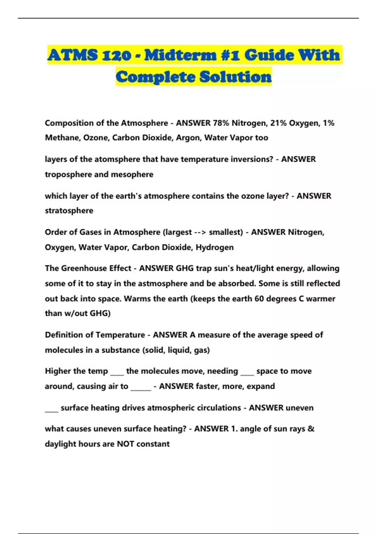 ATMS 120 - Midterm #1 Guide With Complete Solution...