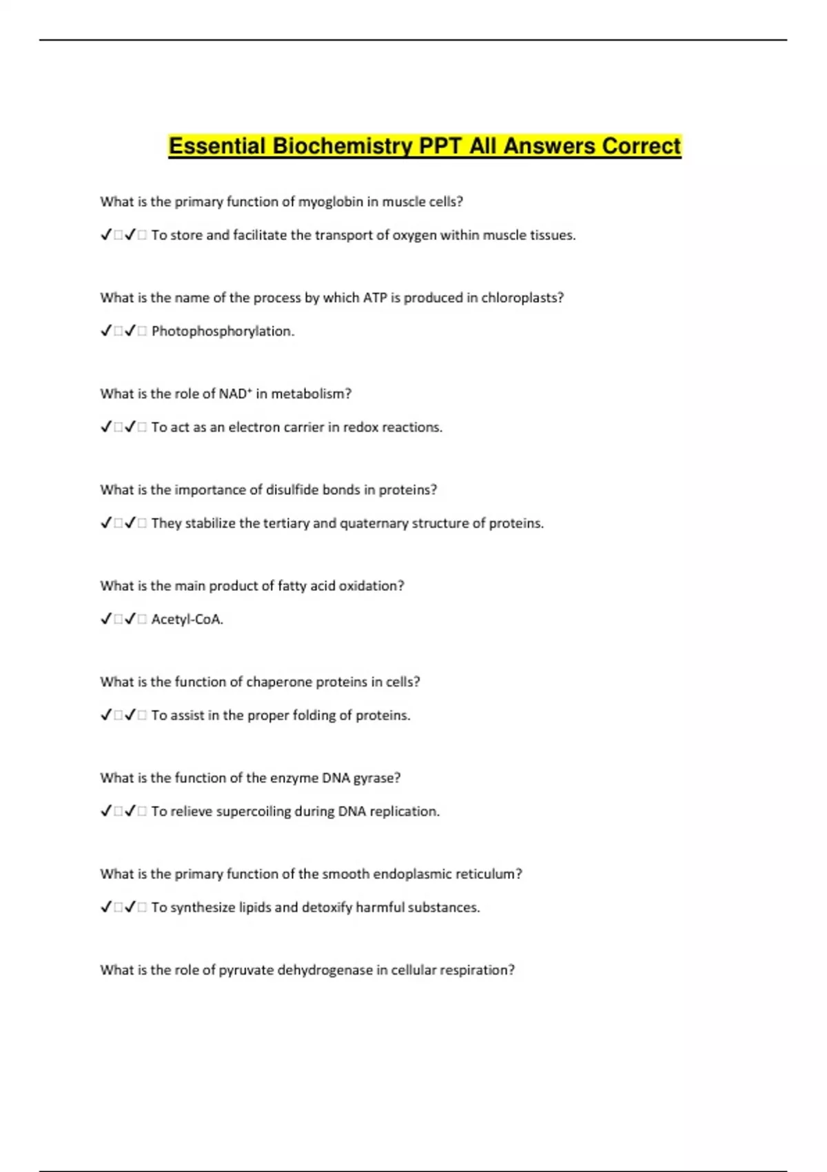 Essential Biochemistry PPT All Answers Correct