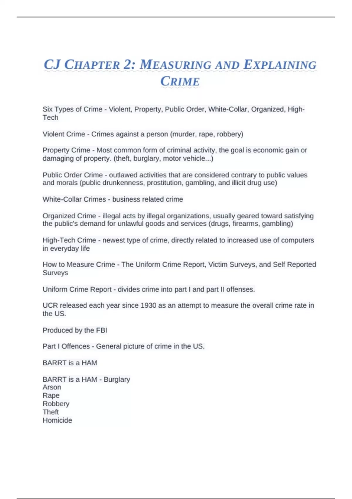 CJ CHAPTER 2: MEASURING AND EXPLAINING CRIME STUDY GUIDE