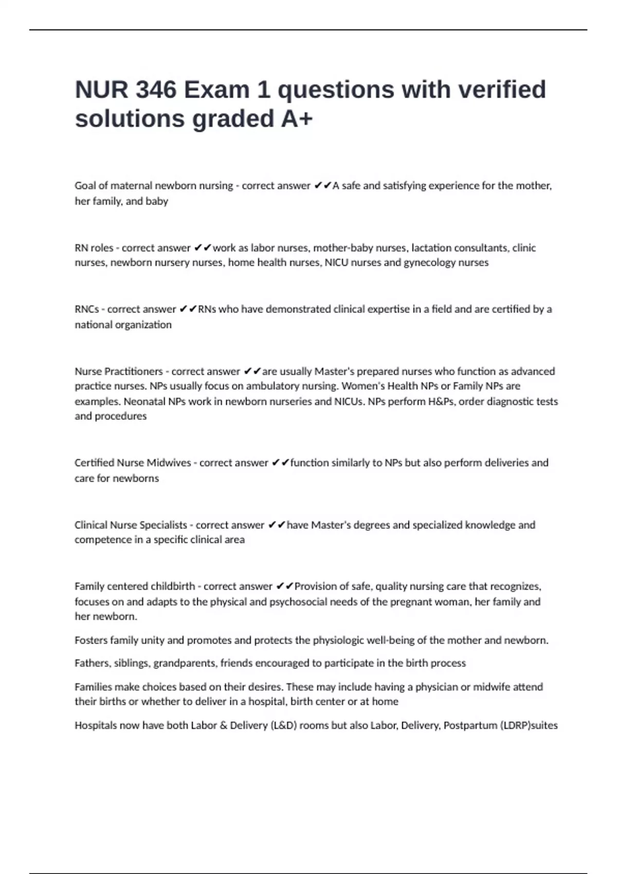 Goal of maternal newborn nursing - correct answer ✔✔A safe and satisfying experience for the mother,