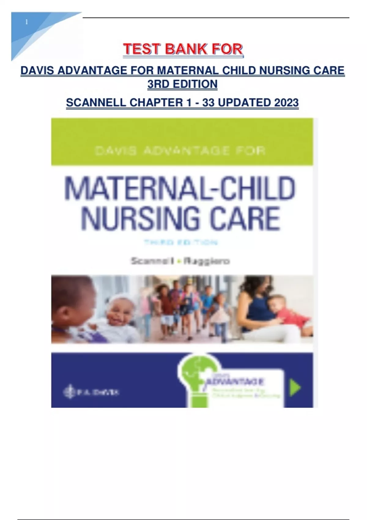 TEST BANK FOR DAVIS ADVANTAGE FOR MATERNAL CHILD NURSING CARE 3RD EDITION
