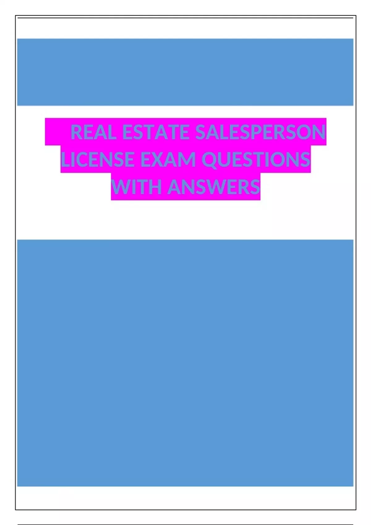 , REAL ESTATE SALESPERSON LICENSE EXAM