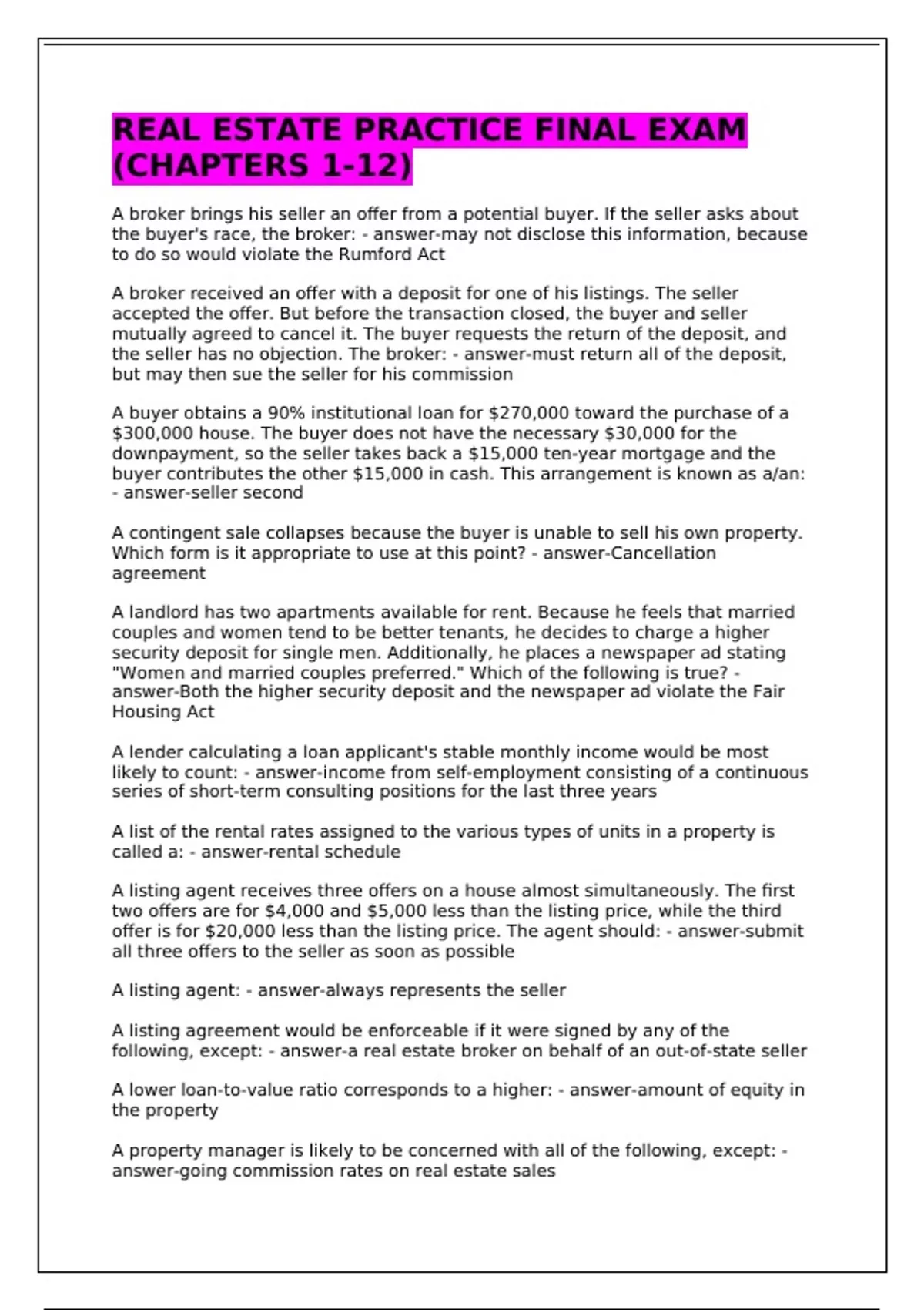 accepted the offer. But before the transaction closed, the buyer and seller