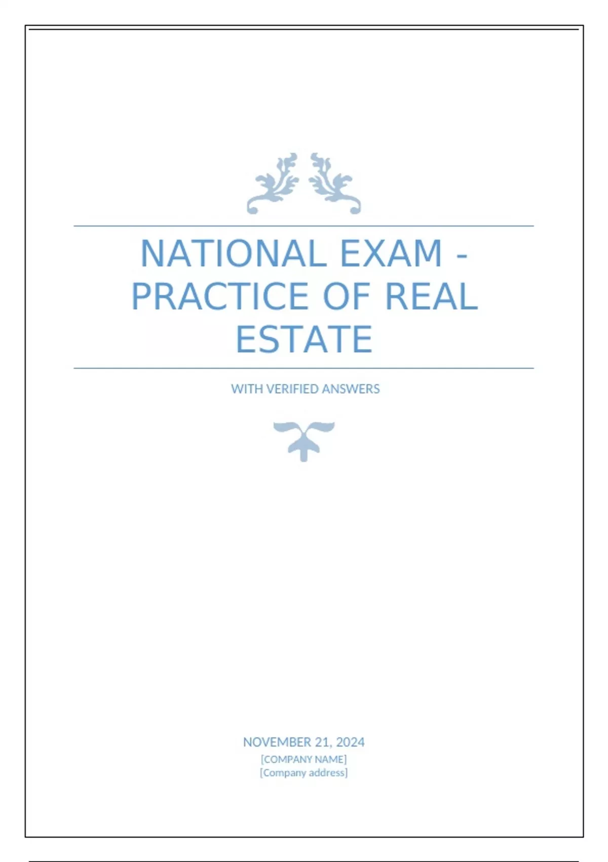 , NATIONAL EXAM - PRACTICE OF REAL ESTATE