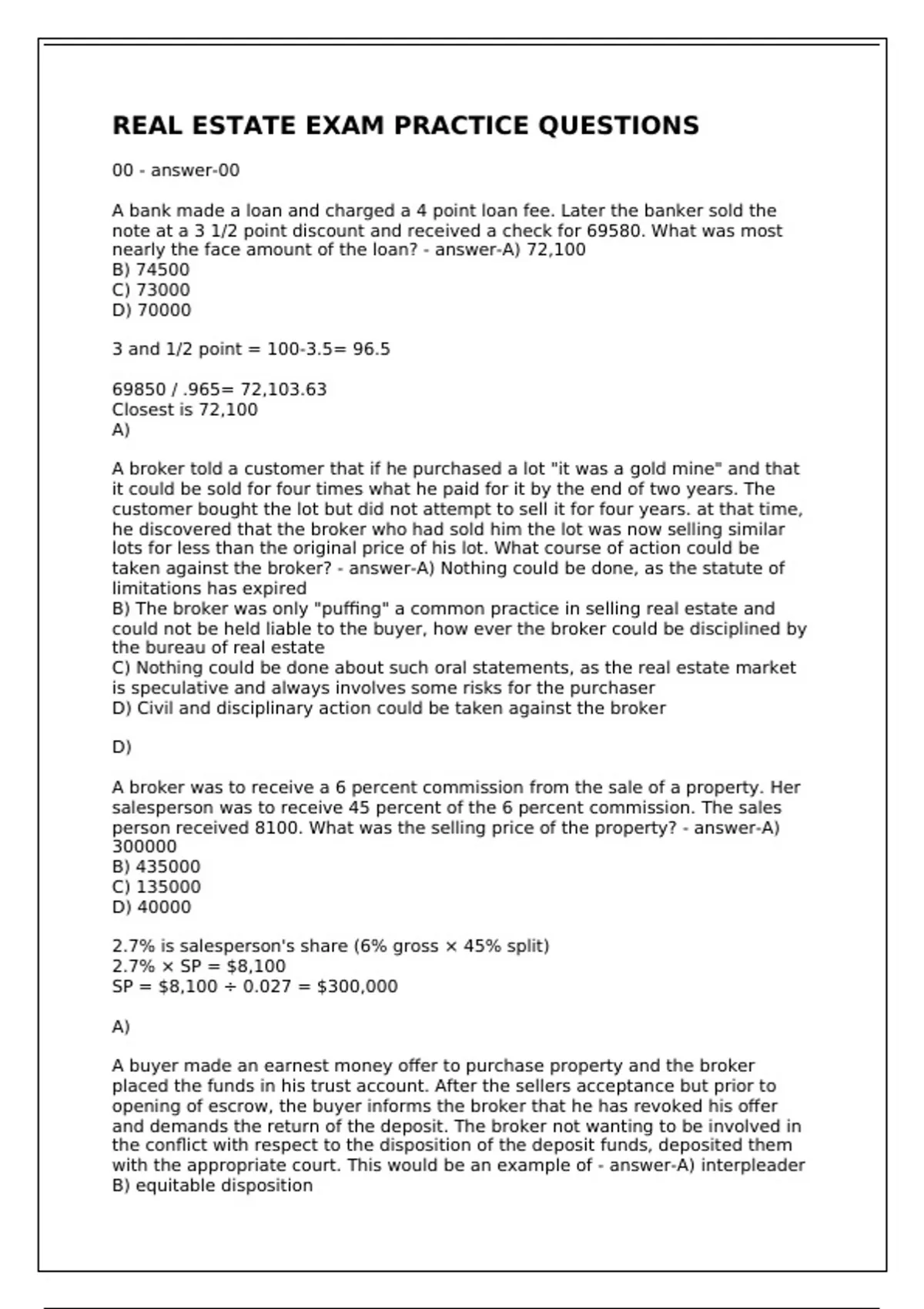 person received 8100. What was the selling price of the property? - answer-A)