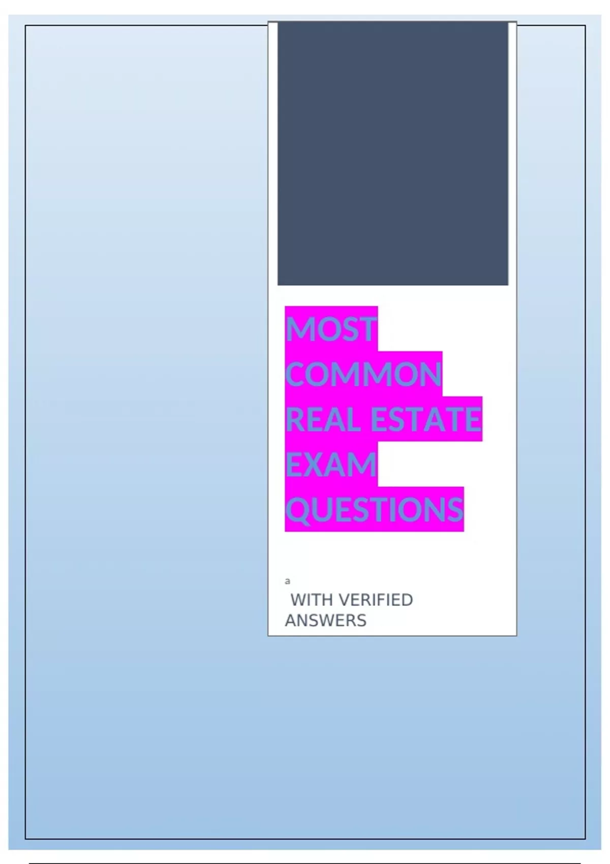 A bill of sale is used to transfer the ownership of what? - answer-Personal property A borrower takes out a mortgage loan that requires monthly payments of $875.70 for 20 years, and a final payment of $24,095. What type of loan is this? - answer-balloon loan A buyer and a seller both sign a purchase contract. What kind of title interest does the buyer have in the property at this point? - answer-Equitable (refers to a persons right to obtain full ownership of a property or property interest) A change in flight patterns that caused a loss in property value would be an example of: - answer-Economic Obsolescence (form of depreciation that from causes outside your property lines) A court order to a properly designated individual to sell property in order to satisfy a judgment is called: - a deficiency judgment - a writ of execution - a lis pendens - an attachment - answer-a writ of execution (a court order to sell something) A listing broker had a signed sales contract on a house. The broker noticed a crumbling wall in the basement. The broker should inform: - both the buyer and seller - the seller only - the buyer, seller, mortgage company - the buyer only - answer-Both the buyer and seller (have to disclose all material facts to both buyer and seller) A normal section in the Government Rectangular Survey System contains: - answer-1 sq mile A person who has complete control over a parcel of real estate is said to own a: - life estate - fee simple estate - leasehold estate - defeasible estate - answer-fee simple estate (highest degree of ownership) A portion of Joe's building was inadvertently build on Ginny's land. This is called an: - easement - encroachment - avulsion - accretion - answer-- Encroachment A portion of Joe's building was inadvertently built on Ginny's land. This is called an: - easement - encroachment - avulsion - accretion - answer-encroachment A possessory right or ownership interest in real estate is called an - answer-Estate A purchaser is qualified to obtain an FHA loan for his new home. Which of the following would he apply to? - answer-An FHA lender A real estate broker was responsible for a chain of events that resulted in the sale of one of his clients properties. The broker is legally called the: - responsible party - compensable cause - initiating factor - procuring cause - answer-procuring cause (the agent who caused the buyer to purchase the home and earned the commission is generally the procuring cause agent) A township contains only: - 640 acres - 36 sq yards - 23,040 feet - 36 sections - answer-36 sections (section is 1 sq mile, township is 36 sections, township is 36 sq miles) An agent becomes the agent of the seller when both the seller and the agent sign: - answer-Listing agreement An appraiser examines a building that is 25 years old. Because of superior upkeep, it has the condition of an 11 year old building. The appraiser may use the 11 year old age as the: - actual age - effective age - numerical age - physical age - answer-Effective age (the age based on its condition) Blockbusting, panic selling, and panic peddling - answer-panic a neighborhood into thinking property values will decline due to unwanted persons moving in (against FHA) Construction onto the property of another, like a wall fence, building, is known as what? - answer-Encroachment (think of somebody stepping over a line from their side to yours. an encroachment is the physical intrusion of a structure or improvement on the land of another. *ex: fence or driveway or tree over the property line) Discrimination is prohibited in lending practices under which act? - answer-Equal Credit Opportunity Act (ECOA) (passed in 1992) Economic obsolescence in a property is generally: - answer-a type of depreciation that is incurable. (when there is economic obsolescence people move) eminent domain - answer-the right of government to take private property for public use Eminent domain and escheat are examples of what - answer-involuntary alienation (government taking property from you whether you like it or not) Encumbrance - answer-Anything which affects or limits the fee simple title to property (anything that limits you: easements, clouds on title, liens, mortgages) If one uses the words "of definite duration" to describe a lease, it's most likely: - answer-estate for years If the owners of a shopping center want a major department stores lease to provide rental payments that reflect the store's sales, they are most likely to use which type of lease? - answer-Percentage lease In a new counter-offer: - terms of offer can not be changed - counter offeror becomes the counter offeree - counter offeror can change the terms of the offer unilaterally - answer-- counter offeror becomes the counter offeree (brand new offer) In some states, instead of a mortgage they use - answer-a deed of trust In the formation of contracts, "valuable", "good", "sufficient", and "adequate" are terms most closely associated with which of the following? - consideration - bilateral contracts - compensation - performance - answer-Consideration (can be anything of value that is being exchanged for the purpose of the contract. oftentimes this is money but it can be anything 'valuable, good, sufficient, adequate) Inverse Condemnation - answer-describes a situation in which a person takes action against the government for taking private property but failing to pay compensation as required by the 5th amendment Involuntary methods of conveying property include all of the following except: - quitclaim deeds - adverse possession - escheat - condemnation - answer-quitclaim deeds (most immediate way to transfer property, usually done between friends and family. these deeds are a form of voluntary conveyance of a property without any warranties) Jones put his house on the market. Brown made a written purchase offer that Jones accepted in writing. When is the contract valid? - When Brown is notified of the acceptance - When the broker gets 