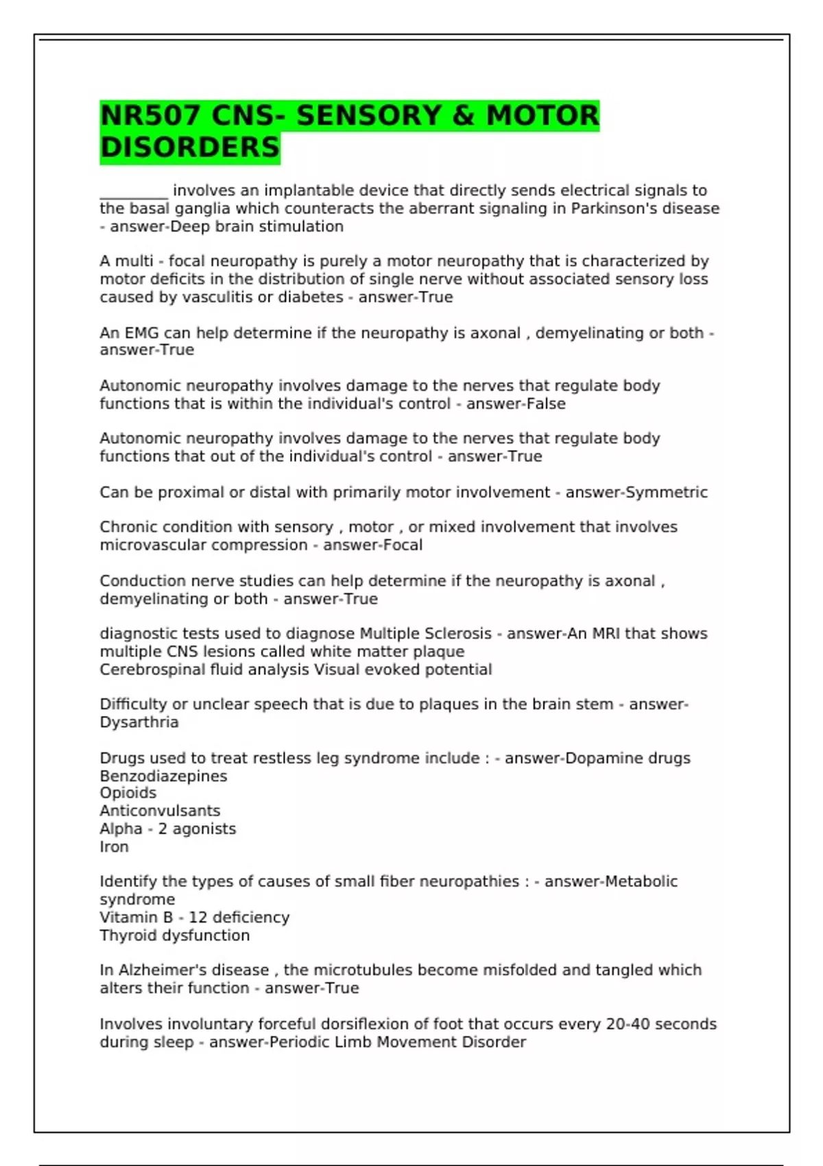 NR507 CNS- Sensory & Motor Disorders