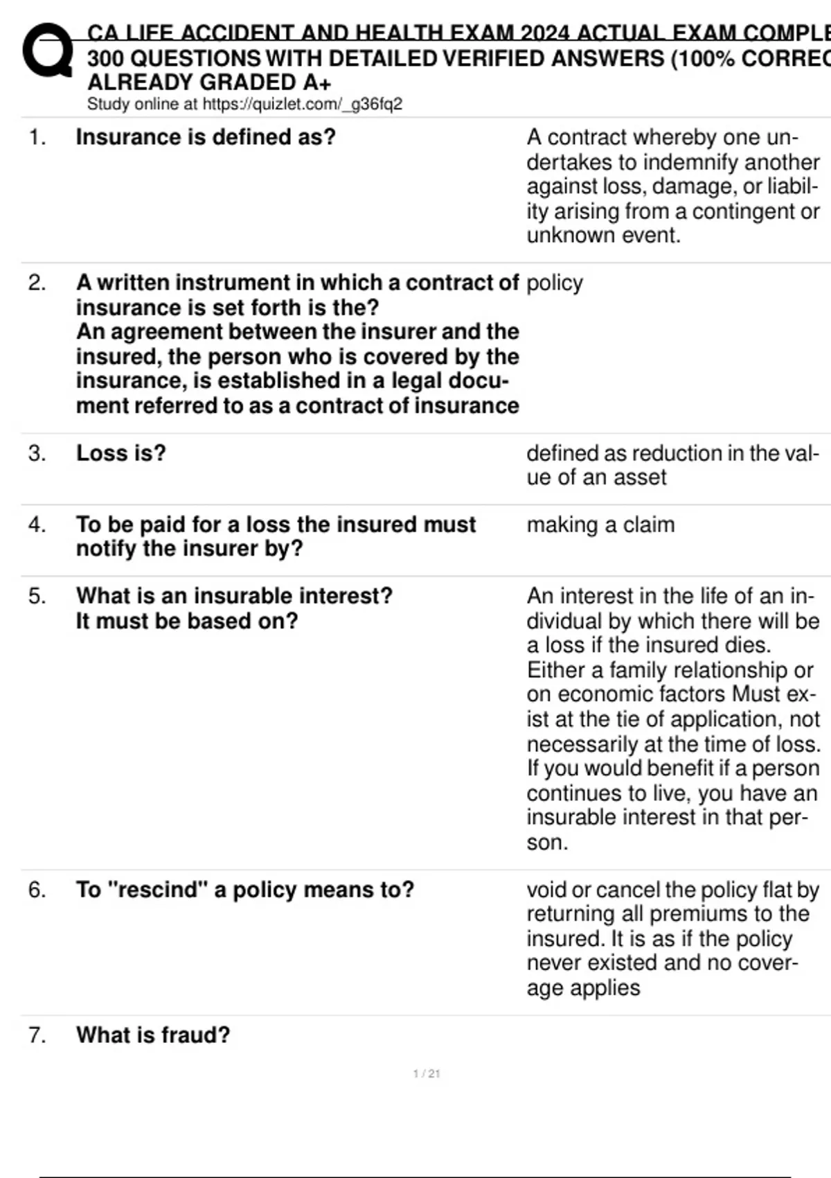CA LIFE ACCIDENT AND HEALTH EXAM 2024 ACTUAL EXAM COMPLE