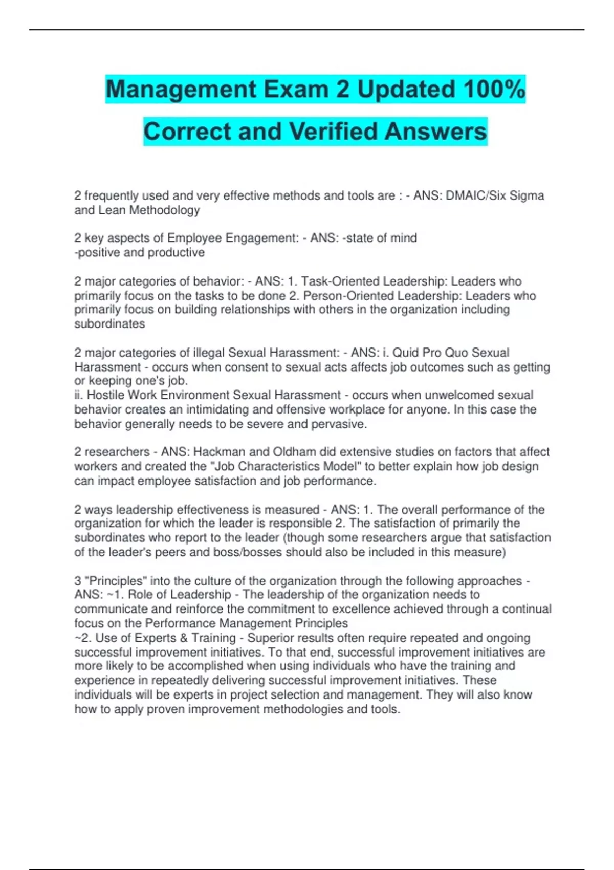 Management Exam 2 Updated 100%