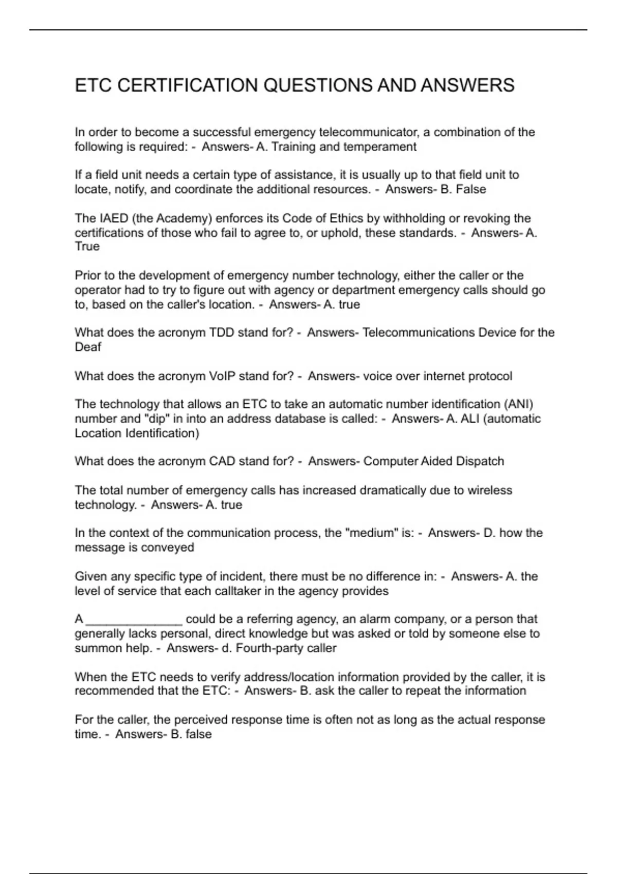 ETC CERTIFICATION QUESTIONS AND ANSWERS