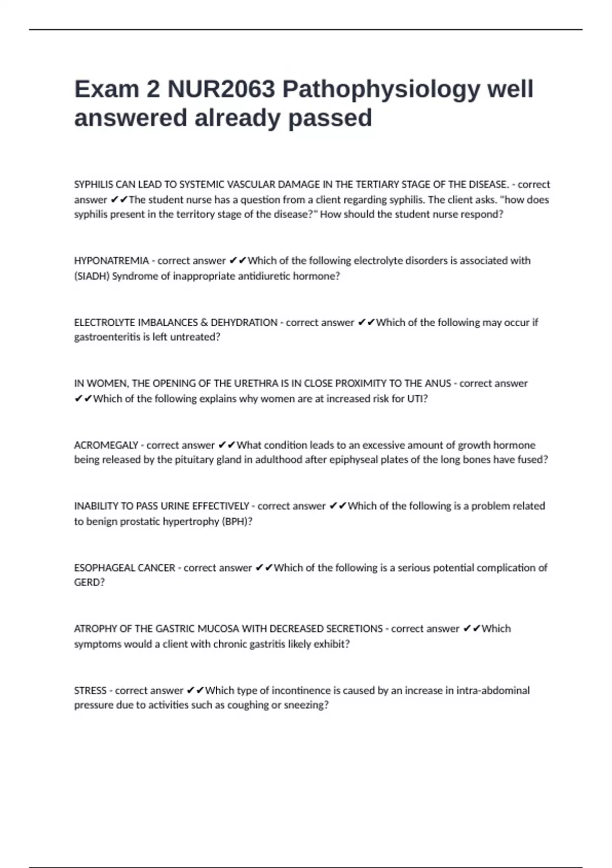 answer ✔✔The student nurse has a question from a client regarding syphilis. The client asks. "how does