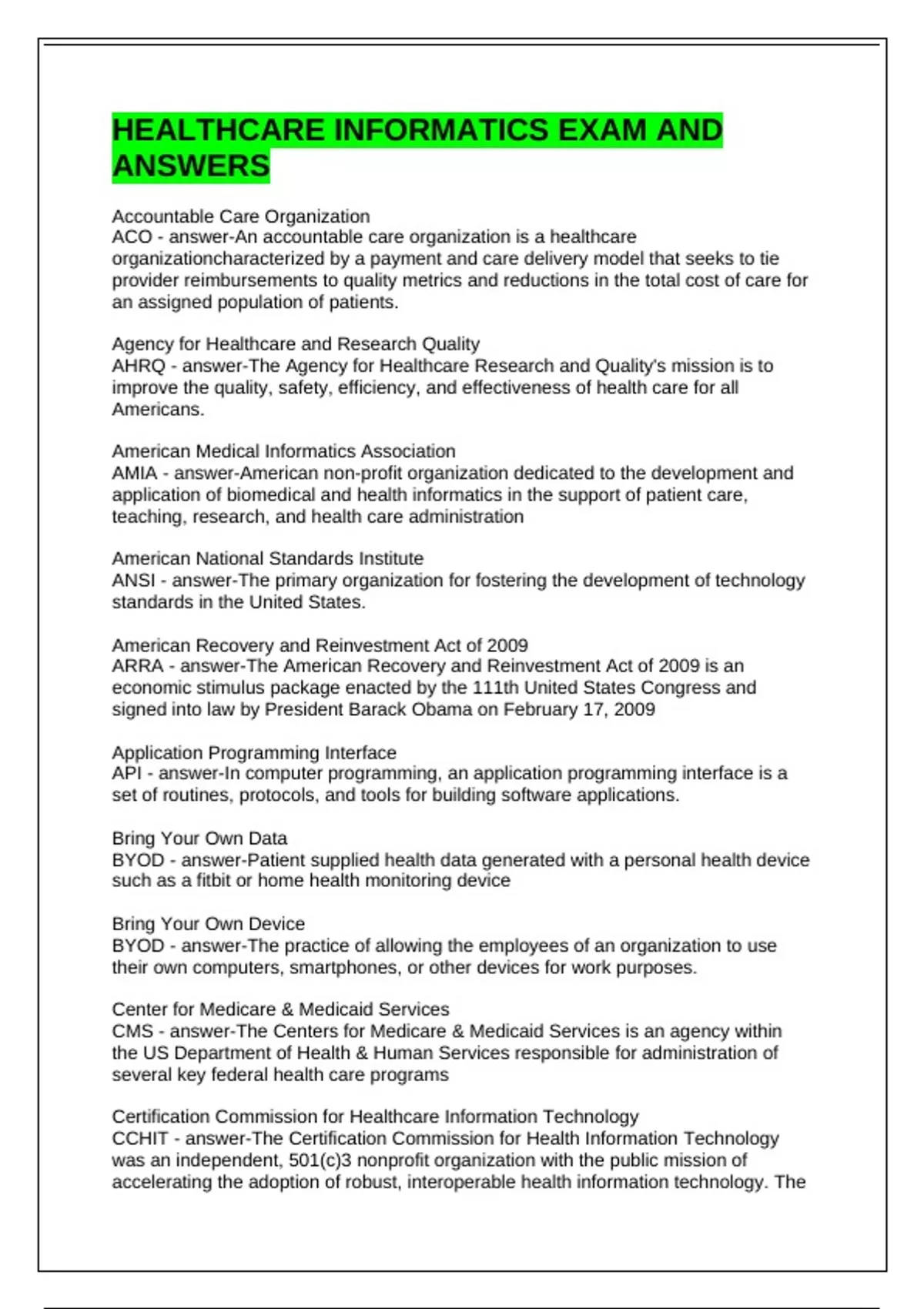 ACO - answer-An accountable care organization is a healthcare