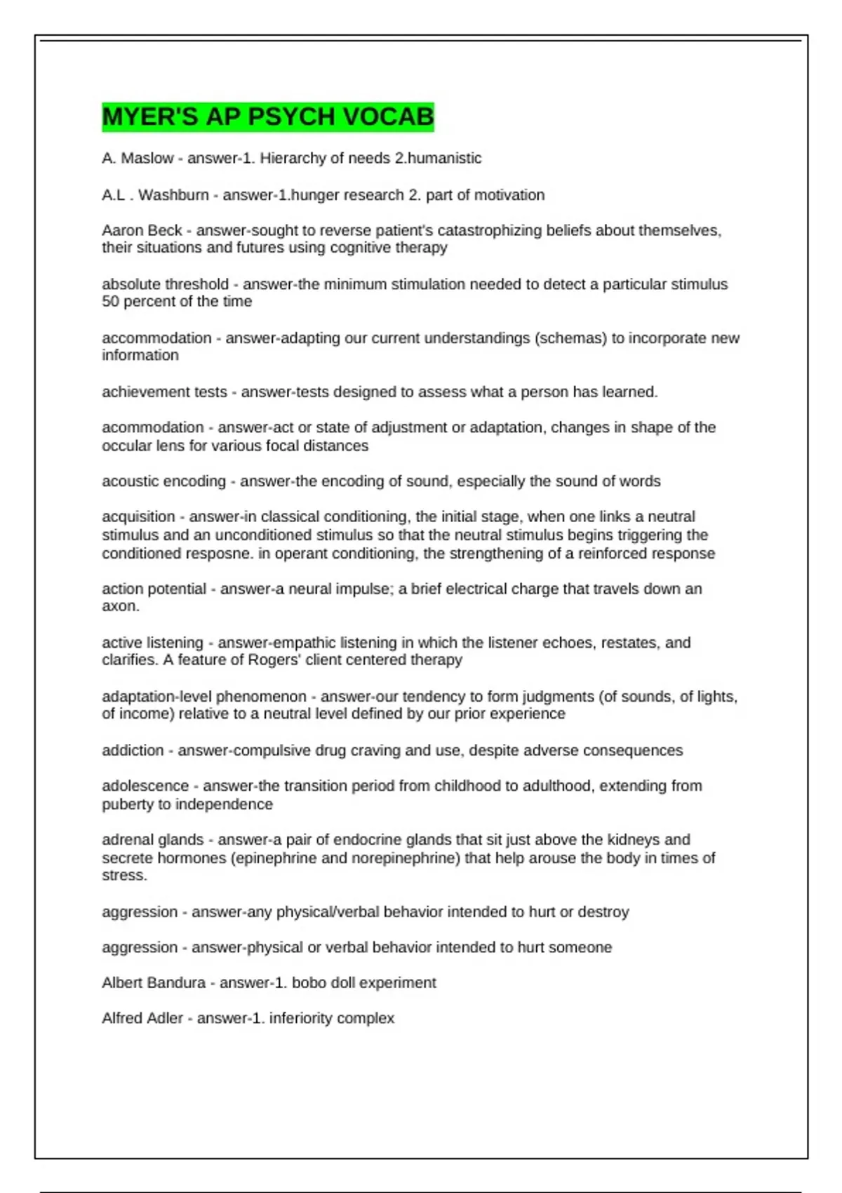 A. Maslow - answer-1. Hierarchy of needs 2.humanistic