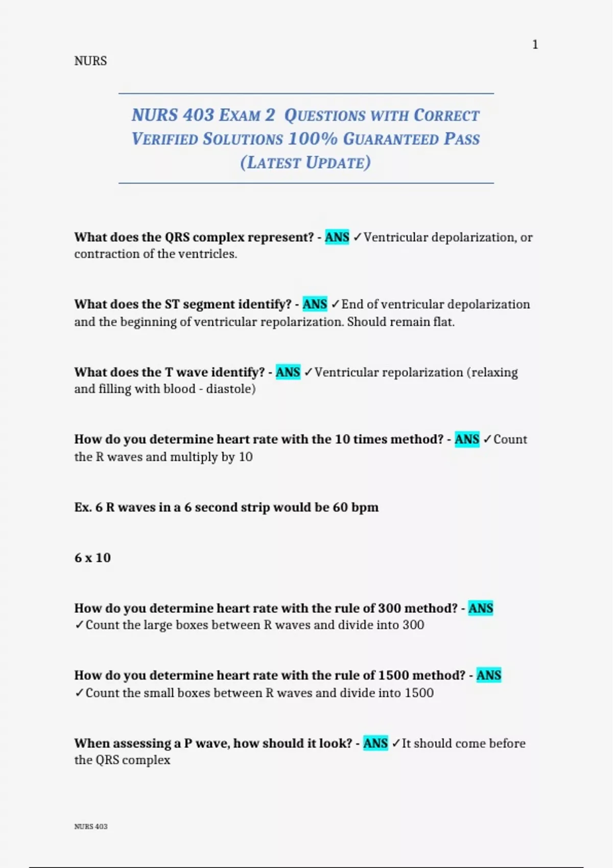 NURS 403 EXAM 2 QUESTIONS WITH CORRECT VERIFIED SOLUTIONS 100% GUARANTEED PASS (LATEST UPDATE)