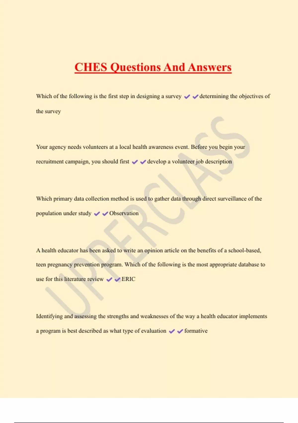 , CHES Questions And Answers