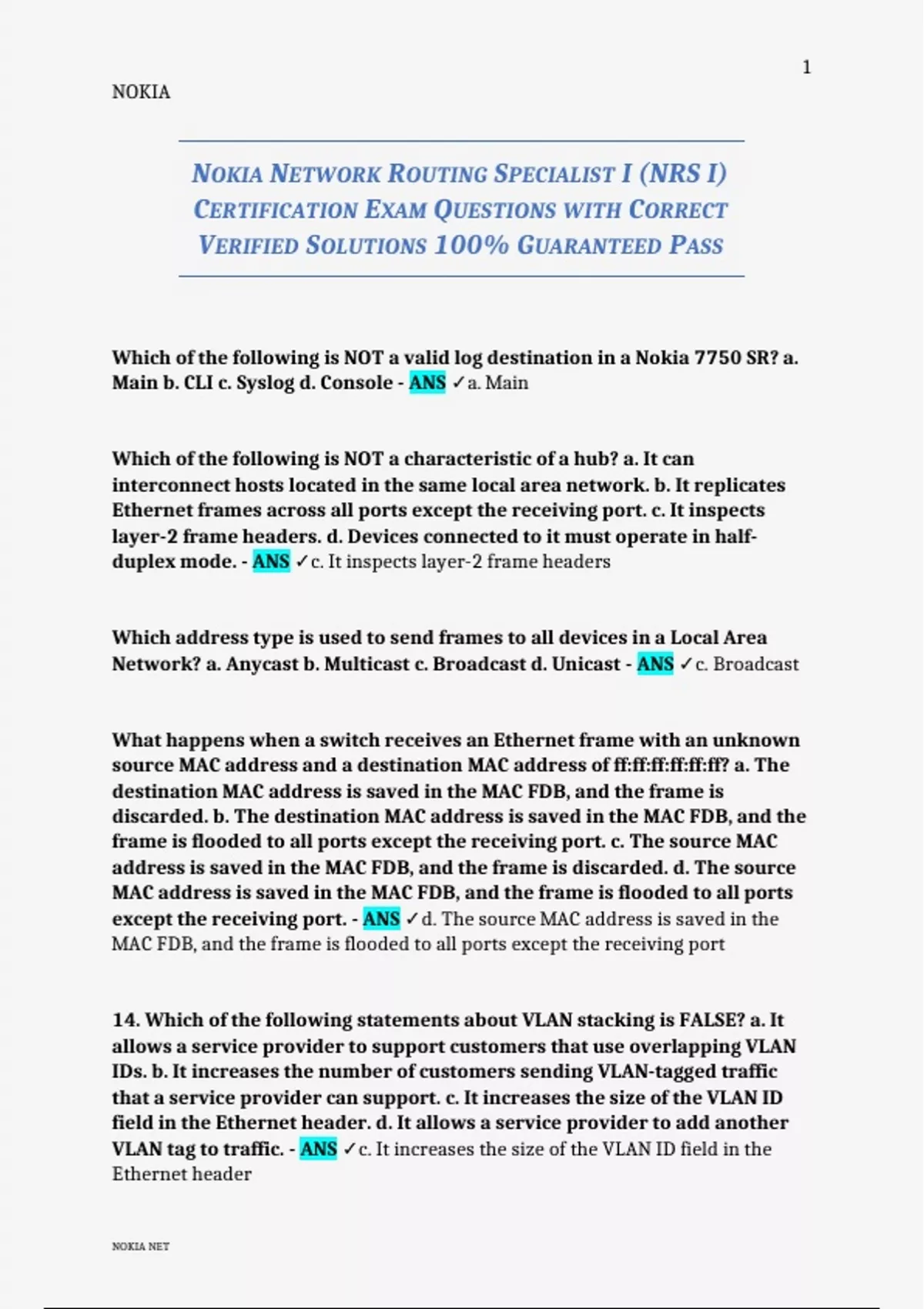 NOKIA NETWORK ROUTING SPECIALIST I (NRS I)