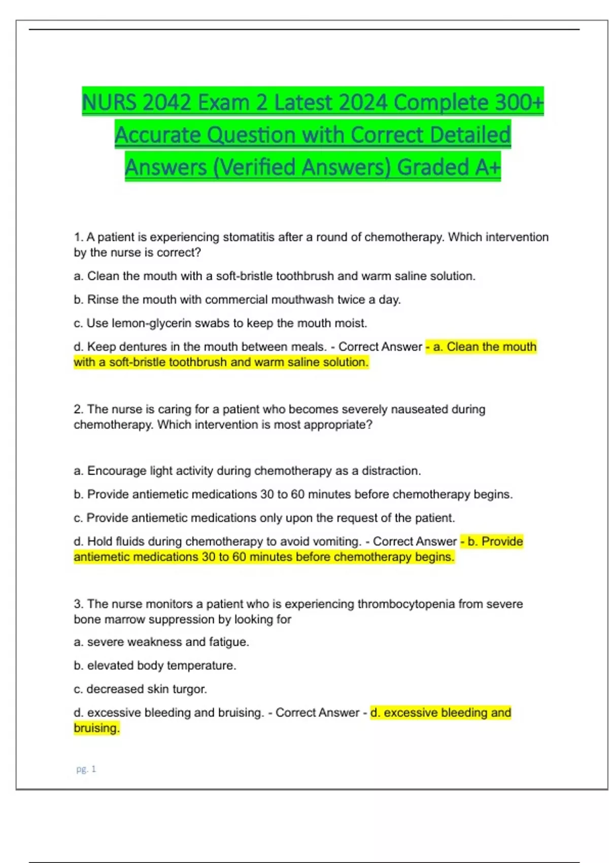 d. Hold fluids during chemotherapy to avoid vomiting. - Correct Answer - b. Provide