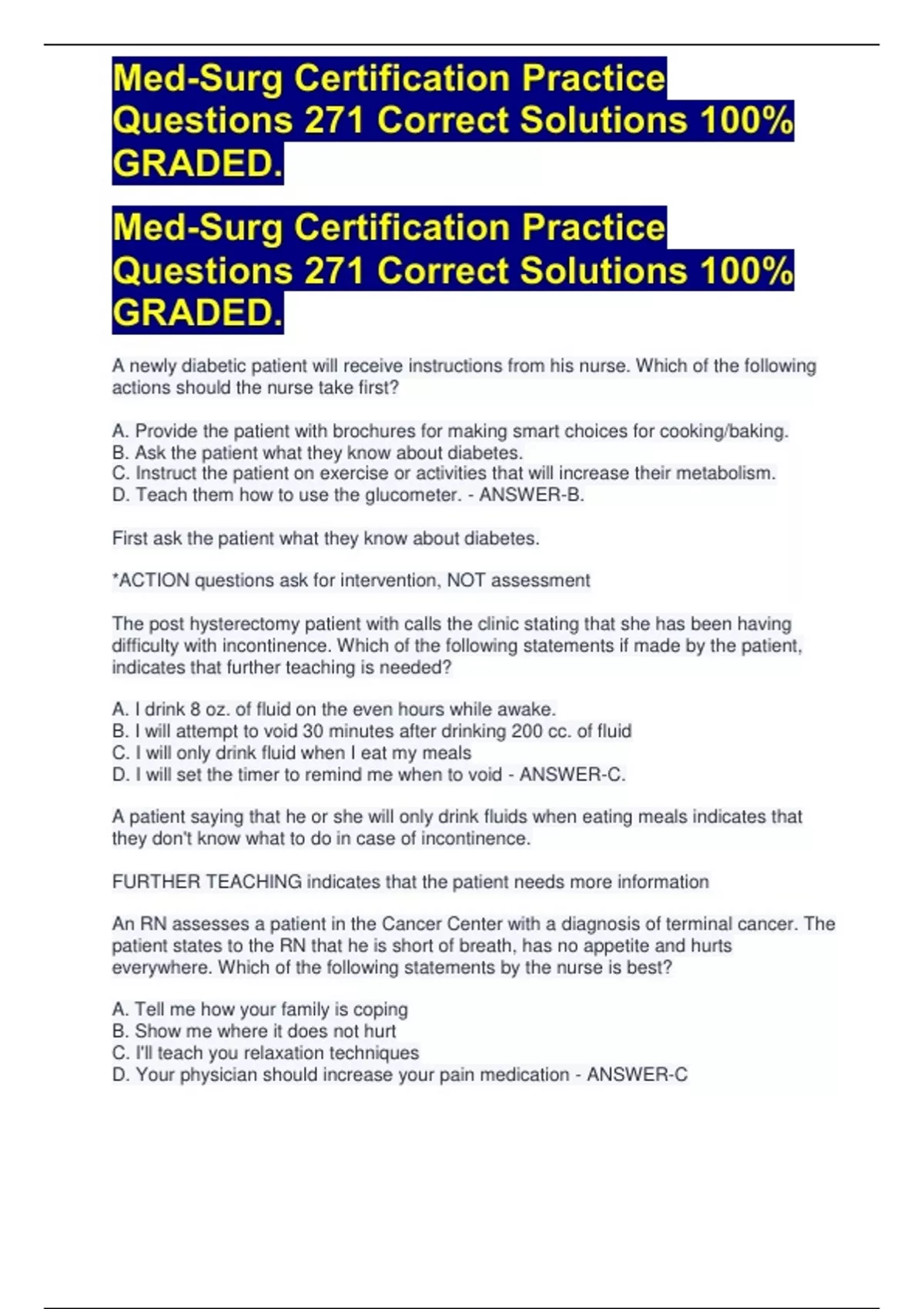 Med-Surg Certification Practice Questions 271 Correct Solutions 100% GRADED. Med-Surg Certification Practice Questions 271 Correct Solutions 100% GRADED. Med-Surg Certification Practice Questions 271 Correct Solutions 100% GRADED. Med-Surg Certification Practice Questions 271 Correct Solutions 100% GRADED. Med-Surg Certification Practice Questions 271 Correct Solutions 100% GRADED. Med-Surg Certification Practice Questions 271 Correct Solutions 100% GRADED.