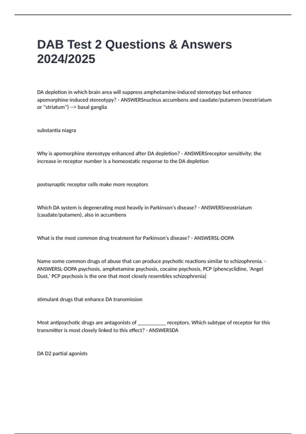 Why is apomorphine stereotypy enhanced after DA depletion? - ANSWERSreceptor sensitivity; the