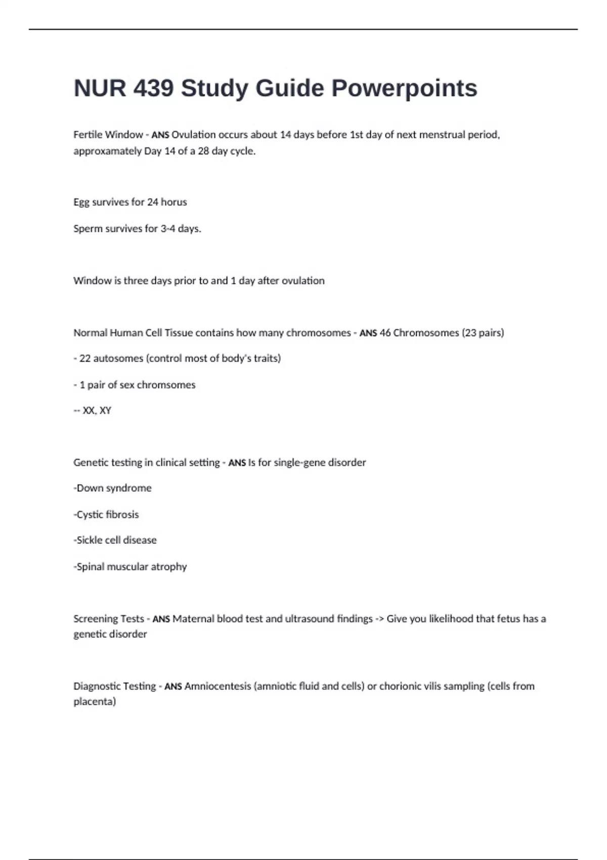 Screening Tests - ANS Maternal blood test and ultrasound findings -> Give you likelihood that fetus has a