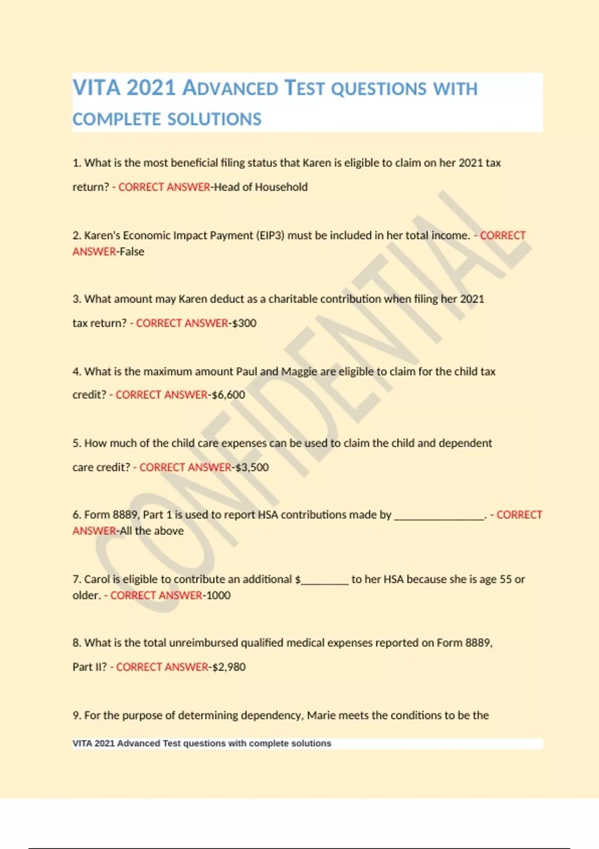 VITA 2021 ADVANCED TEST QUESTIONS WITH COMPLETE SOLUTIONS.